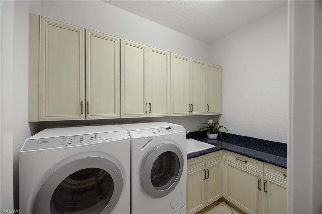 Located within the exclusive gated enclave of The Classics at Lely Resort, this HIGHLY UPGRADED residence was built by Stock Construction and offers 4,060 square feet of interior living, 5,928 square feet under roof and stunning 8,717 square feet of refined space, including garage, pool and screened patio. Used only occasionally as a vacation home, the residence has been meticulously maintained and remains in impeccable condition. With expansive outdoor living and serene lake and preserve views, this four-bedroom plus den, four-bath home exemplifies timeless design and the finest in Naples living. Offered furnished with limited exclusions. Upon entry through the double glass doors, architectural precision defines the interiors. The living room features soaring coffered ceilings, crown molding, a fireplace with mirrored accents and a fully appointed wet bar with wine refrigerator. Ten-foot impact glass sliding doors frame the residence, including in the family room, where pocketing sliders with a disappearing corner offer a seamless indoor-outdoor transition. The adjacent breakfast nook is surrounded by mitered glass offering panoramic views of the lanai. The chef’s kitchen includes white cabinetry, stone countertops, Wolf cooktop, Viking refrigerator and oven with warming drawer, and a Miele dishwasher. A spacious island, breakfast bar and walk-in pantry complete this beautiful kitchen. The formal dining room is anchored by a sculptural Lucite and metal chandelier above an architectural niche designed for serving or display. Off the kitchen, the family room includes a recessed entertainment cove and architectural ceiling detail. The primary suite features a bright seating cove, dual walk-in closets with custom white built-in cabinetry, and a luxurious bath with separate vanities, a walk-in shower and soaking tub framed by plantation-shuttered windows. Each guest suite is privately situated; one includes wood flooring and pool access. Outdoor living includes two covered lanais, coffered ceiling with wood inlay, full summer kitchen, and contemporary pool and spa with water bowls, patio lighting and panoramic screen enclosure. A rare dual-driveway design leads to the oversized three-car garage. Additional features include a den with wood flooring, detailed tray ceilings throughout, and a well-equipped laundry room with Miele appliances, laundry sink and tall cabinetry. Multi-room surround sound makes this home perfect for entertaining! Residents and their guests enjoy The Players Club and Spa amenities: resort-style pools, dining, fitness, tennis, pickleball and more. Lely Resort is also home to the private Classics Golf Club and the scenic semi-private Mustang and Flamingo courses. Conveniently located near world-class beaches, fine dining and upscale shopping in both Naples and Marco Island. Do not miss this rare opportunity to own a coveted Majestic model in The Classics.
