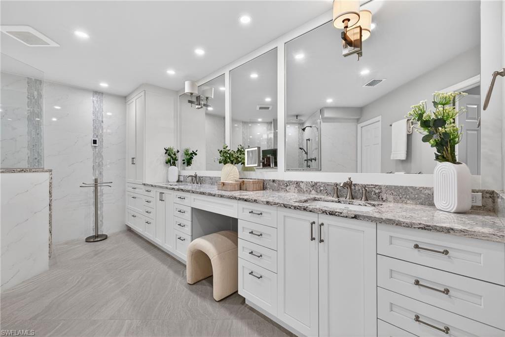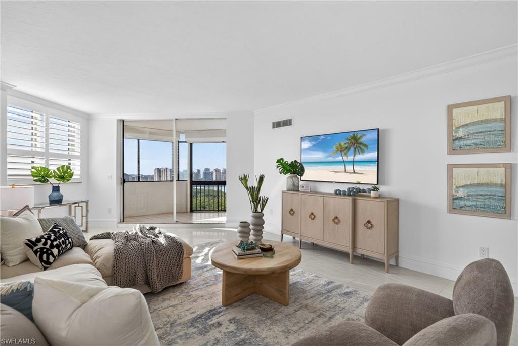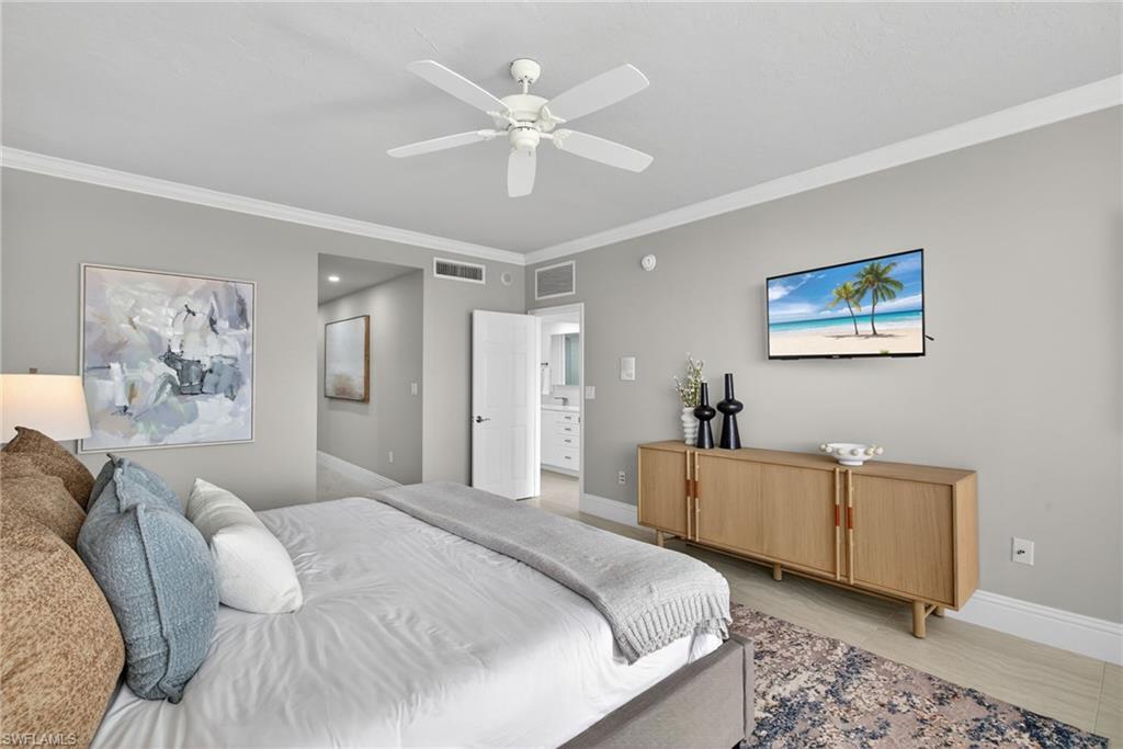 JUST REDUCED! Stunning 18th floor penthouse comprising nearly 3200 square feet of living space. Newly remodeled and upgraded from its original finishes and floorplan, Penthouse E at Grosvenor is a standout beachside property in Pelican Bay. Views to the southwest and Gulf, as well as northwest views taking in the Pelican Bay skyline, capture sunsets and evening lights. Split floor plan offers privacy for the primary suite and guests. Trams to the beach and Pelican Bay dining and amenties are accessed steps away from the building. Ideally Located at the southern end of Pelican Bay Boulevard, the Waterside Shops and restaurants, Artis museum and philharmonic are just two minutes from the front door. Offered at an exceptional price and move in ready for the 2026 Season!