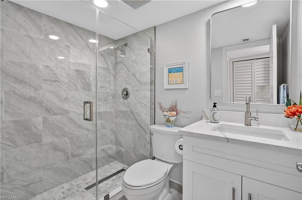 STUNNING-BEACH-BOATING-FISHING! Million dollar BAY & ESTUARY SOUTH & WESTERLY WATER VIEWS AND SUNSETS! THIS 2 BEDROOM, 2 BATH CORNER UNIT HAS BEEN COMPLETELY REMODELED ($225,000+/-)(0 HURRICANE DAMAGE). OPEN FLOOR PLAN WITH ALL DESIGNER "WOOD PLANK" CERAMIC TILE FLOORS THROUGHOUT THE ENTIRE HOME, for total ease of maintenance. "CHEFS" KITCHEN WITH BEAUTIFUL "WHITE SHAKER" WOOD CABINETS, LEVEL 5 Quartz TOPS, HIGH END STAINLESS STEEL APPLIANCES and Tile Backsplash .Master Bedroom has Extra Large His & Hers Walk-In Closet, Dual Granite Vanities and Floor-to-Ceiling Glass & Tile Walk-In Shower and has it's own private Lanai. With 1,500+/- Sq ft. of living area, it offers an exceptionally large (wrap around) screened lanai with outstanding PANORAMIC views of the pool, mangroves, bay and waterways. THE HOME HAS ALL NEW ELECTRIC STEEL HURRICANE ROLL-DOWN SHUTTERS FOR TOTAL RESIDENT STORM PROTECTION. (BUILDING IS AT HIGHEST ELEVATION OF ALL THE COMPLEX BUILDING AND WITH A NEW ADDITIONAL 18" ADDED TO THE EXISTING SEAWALL AND THE MANGROVE TO THE WEST, OFFERS STORM PROTECTION NOT AVAILABLE IN THE OTHER BUILDINGS). In addition, this unit comes with PLENTY OF GUEST PARKING and it's OWN DEEDED COVERED PARKING SPACE with the advantage and convenience of being the closest spot to the building entrance. This Unique Waterfront Gated Community is conveniently located in North Naples with and allows for Direct Gulf Access for the boating enthusiasts. The property is only steps away from Vanderbilt Beach and Delnor Wiggins State Park & Beach. Surf Colony II offers its residence the ability to LEASE OR BUY a Boat Slip or rent Kayak racks space as available. Future owners will enjoy quick Beach Access, Boating, Tennis Pickleball, or just the luxury of lounging around the tropical community pool that overlooks Turkey Bay. SURF COLONY II IS CLOSE TO CHURCHES, HOSPITALS, RESTAURANTS, MANY IN THE MERCATO AND ENTERTAINING IN THE NORTH CORRIDOR. THE BUILDING HAS DONE ALL THE "SIRS" ENGINEERING REQUIREMENTS AND ARE 100% COMPLIANT (If you're looking for THE "SALT-LIFE" and Upscale Resort Style living, you've found it here! HOME COMES WITH A ONE YEAR COMPLETE HOME WARRANTY.