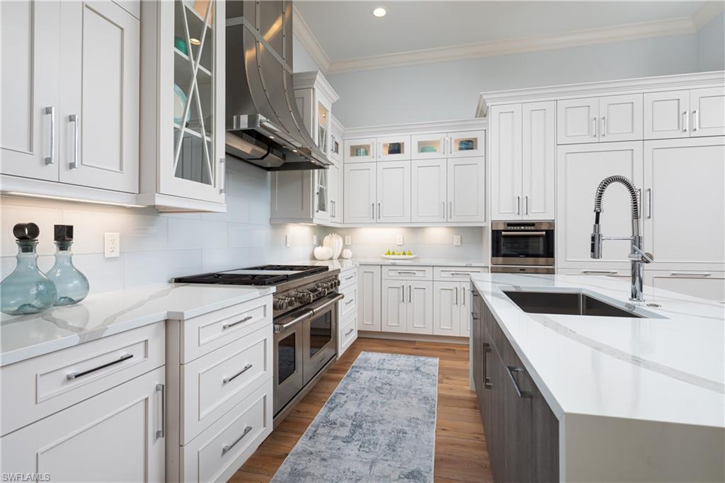 2015-BUILT STOCK CUSTOM HOME ESTATE SET ON A RARE .55-ACRE HOMESITE WITH PRIVATE, LUSH PRESERVE VIEWS, NESTLED WITHIN THE HIGHLY COVETED BONITA BAY COMMUNITY. Originally constructed in 2015 and extensively upgraded and renovated in recent years, this coastal contemporary residence showcases exceptional quality and thoughtful enhancements throughout. Featuring new stunning warm oak flooring, soaring ceilings with custom architectural accents, and one of Southwest Florida’s most impressive outdoor entertaining spaces, this home is designed for both refined living and effortless entertaining. Spanning 4,297 square feet of living space, the residence features 4 spacious bedrooms plus a den, 4.5 bathrooms, dual living areas with a fireplace, a custom beverage bar with built-in beverage refrigerator, and a 3-car garage. Impeccably maintained, the home is equipped with hurricane impact glass throughout, electric storm shutters, a new whole-house generator, and two new HVAC systems. Zero-corner, fully pocketing sliders create a seamless transition to the extraordinary outdoor oasis. Designed for ultimate entertaining, this resort-style retreat offers a spacious pool with tanning shelf and stepping stones, a spa, a newly upgraded and fully equipped outdoor kitchen, and a dramatic fireplace with fire bowls. The beautifully renovated chef’s kitchen features dual islands with quartz waterfall countertops, crisp white cabinetry, and high-end appliances, including a new dishwasher. The primary suite serves as a private sanctuary with direct lanai access and a spa-like bath complete with dual vanities, a separate soaking tub, and a large walk-in shower with multiple showerheads. Bonita Bay residents enjoy exclusive amenities such as a private Beach Park, over 12 miles of walking and biking trails, three parks, pickleball courts, a marina, and an on-site restaurant. Optional membership to Bonita Bay Club offers five championship golf courses, tennis, fitness facilities, and multiple dining venues. Ideally located just minutes from the airport and a short drive to downtown Bonita Springs’ dining, coffee bars, craft cocktails, and live music, this exceptional home offers a perfect blend of luxury, privacy, and community—truly the best of Bonita Springs living.