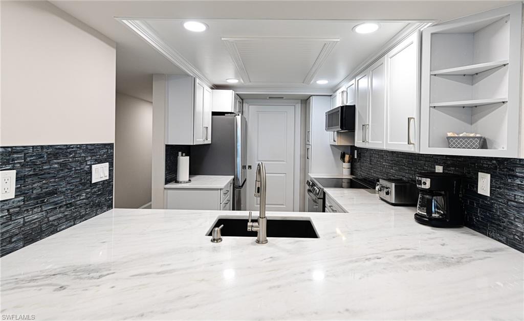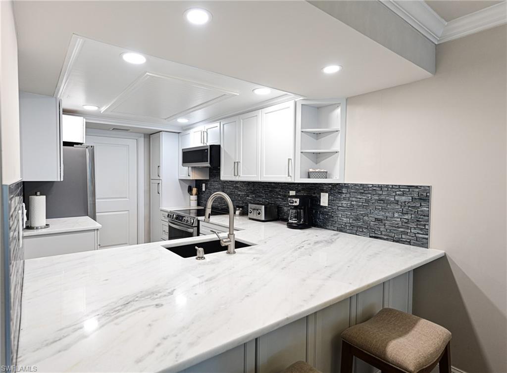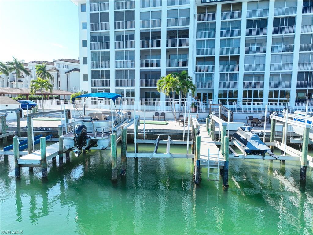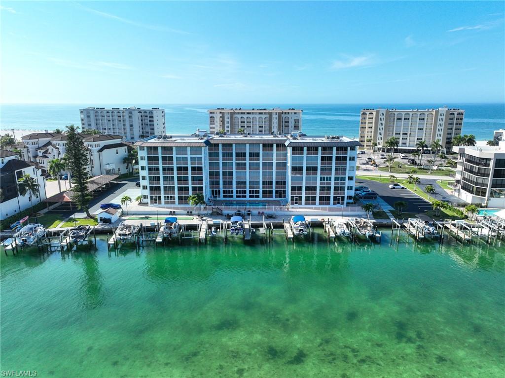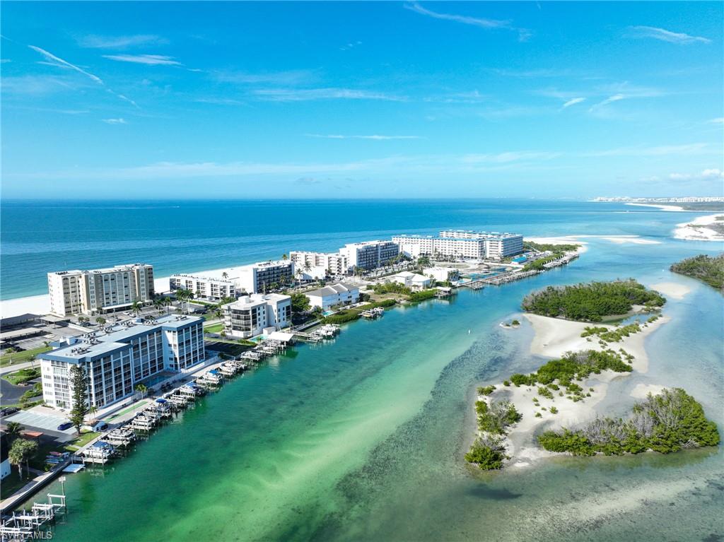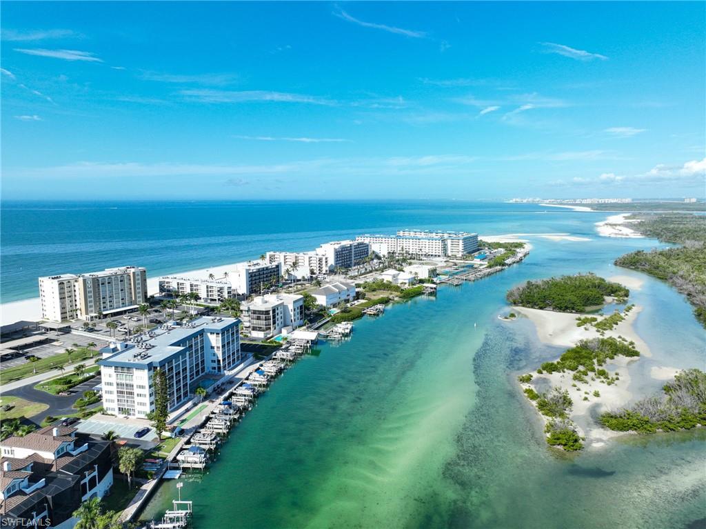 This Bonita Beach 2 bedroom 2 bath bay front condominium located in Casa Bonita Royale offers wide and long bay views including views of the white sandy beach and turquoise Gulf waters to the north at the pass. Your private boat dock with lift is directly behind the condo - right out your screened lanai’s back door providing premier boating with the pass to the gulf in sight from the dock. Also convenient to your lanai (but not in front of it) is the swimming pool and deck sitting right on the bay. Enjoy beautiful Bonita Beach at its widest point via the private deeded beach access right across the street. BUT BEST OF ALL this condo has been completely renovated in a perfect light coastal style with high end finishes throughout. The Kitchen, Dining and Living room are all open to each other and to the screened lanai with bay views from all areas. The kitchen has granite countertops, glass tile backsplash, custom wood cabinetry, stainless steel LG appliances and laundry room is adjacent. The bathrooms have been reimagined with both featuring his and her sinks in extra large vanity cabinets, marble, designer tile and countertops plus high end plumbing fixtures, shower doors, mirrors and lighting. Other features include wood style tile flooring throughout, new interior paint, doors and interior lighting. The custom turnkey furnishings are included to complete this perfect move in ready property. Enjoy this homes as your full time residence, winter home or this condo can be leased for cash flow with selective use for the Owner. Included are shuffleboard, a secure lobby with mail boxes inside, club room and reserved parking. NOTE: Casa Bonita Royale sits up higher than other Condominiums and had no flooding during storms Helene or Milton including this condo. The building has completed the required structural reserve study and milestone engineers report and the building is in great shape, well managed with reasonable fees. Casa Bonita Royale is a short drive to Mercato & Coconut Point Malls, shopping, dining, entertainment, golfing, and RSW International airport.