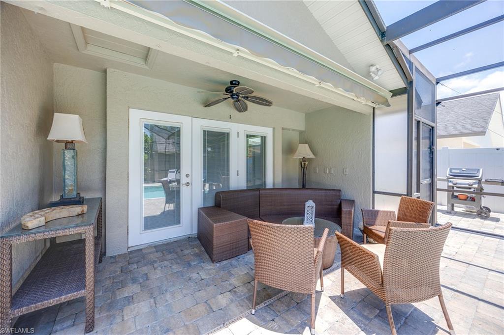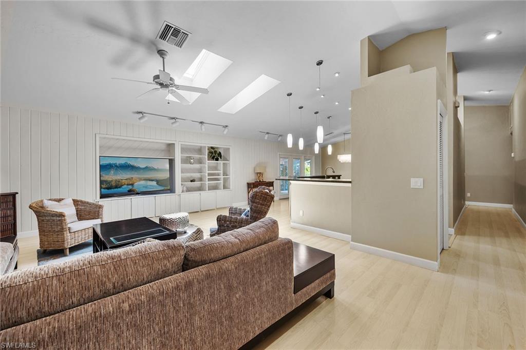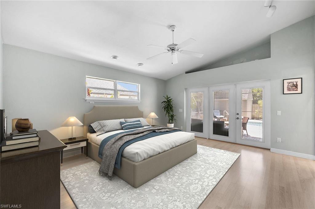 Experience the ideal balance of comfort and style in this beautifully maintained coastal retreat, featuring a luxury heated, screened-in pool and spa with southern exposure, surrounded by lush tropical landscaping. This 3-bedroom, 2-bath home is a haven of artistic charm. Step inside to an open-concept living, kitchen, and dining area with vaulted ceilings, a new impact skylight, built-in bookshelf, and abundant natural light, ideal for everyday living and entertaining. The primary suite offers a walk-in closet, dual sinks, and a bathroom with direct access to the pool for added convenience. Offered partially turnkey furnished with AC (2021), HWH (2023), roof (2022), pool heater (2024), pool pump (2021), a WiFi-controlled pool management system (2023), and updated 8-panel roof solar pool heating (2024). Impact glass throughout. Temperature-controlled, tiled one-car garage, French doors with built-in blinds, new brick pavers, exterior paint, landscaping, and irrigation. Outside, enjoy a jasmine-covered pergola, shower, utility shed, and fruit trees. Minutes from groceries, top-rated restaurants, high-end shopping, and just an 8-minute bike ride or short drive to one of the top 10 beaches in the U.S. No HOA. West of 41, a prime location!