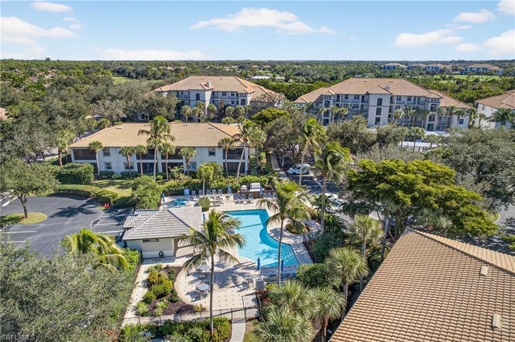 Top-floor 2-bedroom, 2-bath condo located in the heart of the highly sought-after golf community of Pelican Sound! Enjoy vaulted and volume ceilings giving the space an open and airy feel. This lovely home offers a renovated kitchen with granite counters and stainless GE appliances, and ceramic tile wood-look flooring in both bedrooms. The primary suite features a tray ceiling, walk-in closet, and a beautifully updated en suite bath with a frameless glass shower door. A/C replaced in 2023; washer and dryer new in 2018. Relax on the tiled lanai overlooking the sparkling pool just steps away. Stylishly furnished with a beachy vibe, this home is being sold turnkey furnished. Just unpack your suitcase and enjoy! If you are looking for an active lifestyle look no further: 27 holes of Championship golf, 14 pickleball, 8 tennis and 6 bocce courts. State of the art fitness center that is professionally staffed. Pelican Sound is nestled up to the Estero River with access to the Gulf. The community offers dry boat storage, kayaks, canoes and paddle boarding, along with a shuttle boat to Lovers Key State Beach Park. Minutes from RSW International airport and surrounded by fabulous shopping and restaurants. Start Living The Dream!
