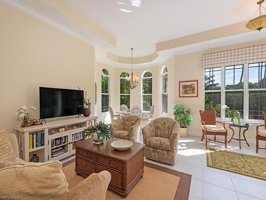 Ideally situated just a five-minute walk from the center of activity of the premier Grey Oaks community, this pristinely-maintained, bright and airy 3-bedroom, 3 bath first floor condo end unit has a desirable eastern exposure and volume ceilings that enhance its spacious feel. Experience relaxing, peaceful mornings, enjoying the pretty backyard landscape views from the main living area, the primary suite and the lanai. The home’s inviting split-bedroom design offers comfort, privacy and a natural flow for everyday living and entertaining. The gated community boasts a 30,000 sq ft wellness center, two clubhouses and four on-site eating venues where residents enjoy resort-style living every day. Besides 54 holes of golf, additional amenities include 10 tennis, 10 pickleball and 4 bocce courts and an Olympic-sized pool, creating endless opportunities for recreation. Just minutes from shopping, dining and the Gulf, this cozy residence blends luxury, convenience and an active lifestyle—all in one perfect setting.