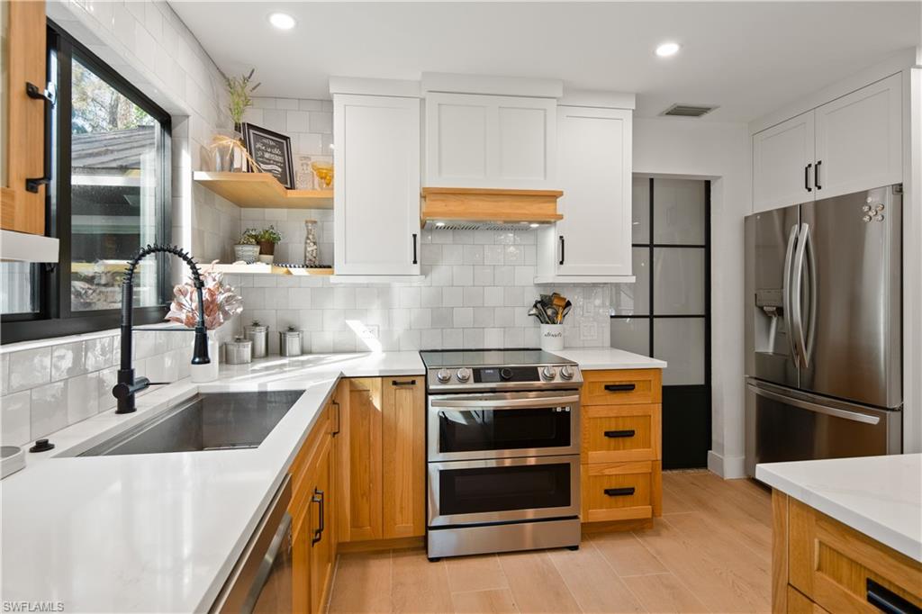 In the heart of central Naples—minutes to the beach and located within one of the area’s most established neighborhoods—this fully renovated two-story pool home offers a rare combination of location, modern upgrades, and outdoor space. With over $400,000 in renovations, this move-in-ready property stands out as a unique offering in today’s market. The interior has been completely reimagined with a brand-new kitchen, all-new bathrooms, updated flooring, upgraded lighting with LED accents, barn doors, and thoughtfully selected finishes throughout. Spacious bedrooms include new closet doors, custom built-ins, and closet organization systems. The main level features two guest bedrooms and a refreshed full bath, while the upper level offers a unique flex loft space, and a primary suite with tropical views and a spa-inspired bathroom with a custom walk-in shower. Outdoor living is highlighted by an east-facing, saltwater heated pool with sun shelf, overflow spa, and water features. Expansive impact sliders open to a two-story lanai, creating a seamless connection between indoor and outdoor spaces. The fully fenced, estate-sized yard and rear garage access enhance both privacy and functionality. The property is located in Tall Pines, a community known for its tight-knit community feel and calendar of resident-led neighborhood events held throughout the year. Conveniently situated in walking or biking distance to shopping, dining, and easy access to Naples beaches, this home offers an exceptional blend of location, upgrades, and lifestyle.