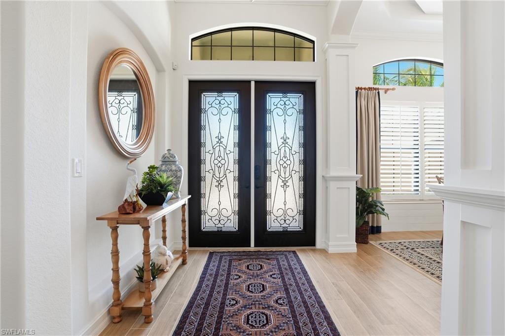 Luxury awaits you in this professionally decorated and furnished Treviso Bay home that comes with a FULL TPC GOLF memberships at the renowned 18-hole TPC championship course. The lush landscaping welcomes you into this Mediterranean one level living in the Ponzaine neighborhood, boasting soaring ceilings, arched windows, crown molding, and plank tile floors. The open concept home with gourmet kitchen, great room, and dining is ideal for entertaining while the large glass sliders visually capture the expansive pool, outdoor kitchen and lanai area overlooking the 15th hole. The Bogenvilla model features a generous primary bedroom with 2 walk-in closets, private bath with dual sinks, walk-in shower, and spa tub offer the perfect retreat. Two additional bedrooms, laundry and a home office complete the interior tour. The home office, also has doors and a closet, so can be used as a fourth bedroom.The attached 3-car garage. There Extraordinary amenities of Treviso Bay include a TPC golf course, pickleball, tennis, & bocce ball courts; spa, salon, resort style pool with full food & beverage service, fitness center, fitness classes tiki bar and club house restaurant. Rookery Bay National Estuary Reserve surrounds the development with a short 15 minute to Marco Island, and only 10 minutes to world class shopping and dining on Naples 5th Avenue. This dream home can be yours!
