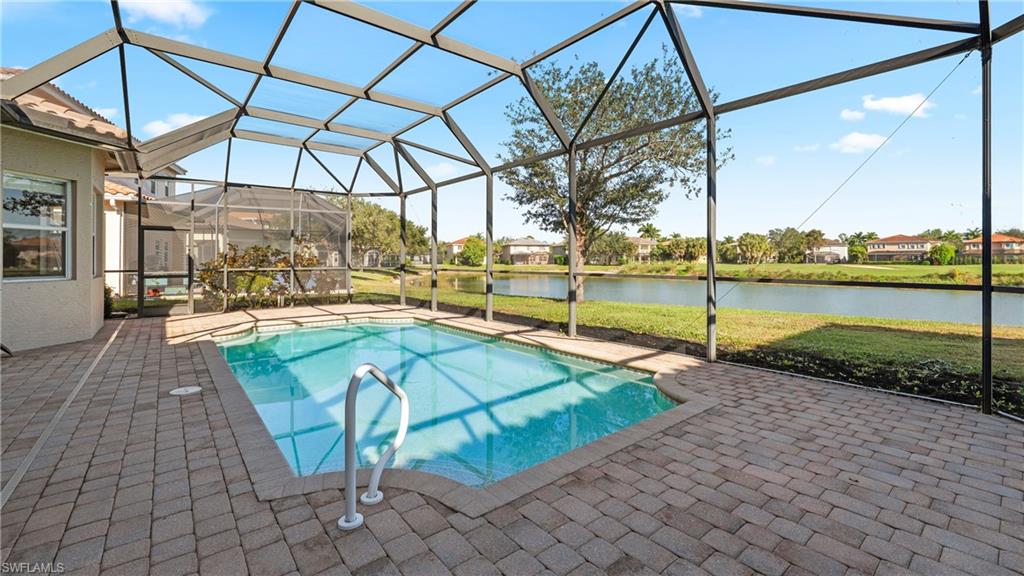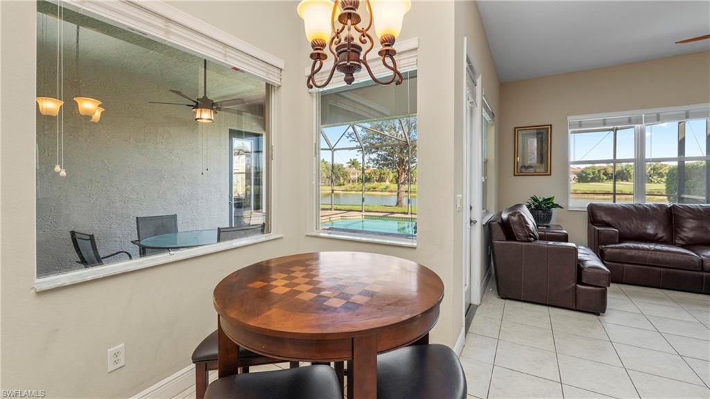 Welcome to this beautifully maintained single-story home located in the gated community of Valencia Country Club, where golf, privacy, and convenience come together. Offering 4 bedrooms, 3 bathrooms, and 2,769 square feet of living space, this residence features a spacious and functional layout ideal for both everyday living and entertaining. The split floor plan provides privacy, while volume ceilings and abundant natural light enhance the home’s open feel. Step outside to your screened private pool and spa, perfectly positioned to capture peaceful golf course and lake views. Whether relaxing or hosting guests, the outdoor space offers a true Florida lifestyle experience. The primary suite is located on the main level and includes dual sinks, a separate soaking tub and shower, and a walk-in closet. Additional highlights include a formal dining area, family room, home office/den, and a laundry room inside the residence. Valencia Country Club offers optional golf membership, allowing residents to enjoy the course without mandatory fees. Community amenities include a clubhouse, fitness center, tennis courts, community pool, sidewalks, and underground utilities. Ideally located in North Naples with easy access to Immokalee Road, shopping, dining, and I-75, this home delivers space, views, and lifestyle in one of Naples’ most desirable gated communities.