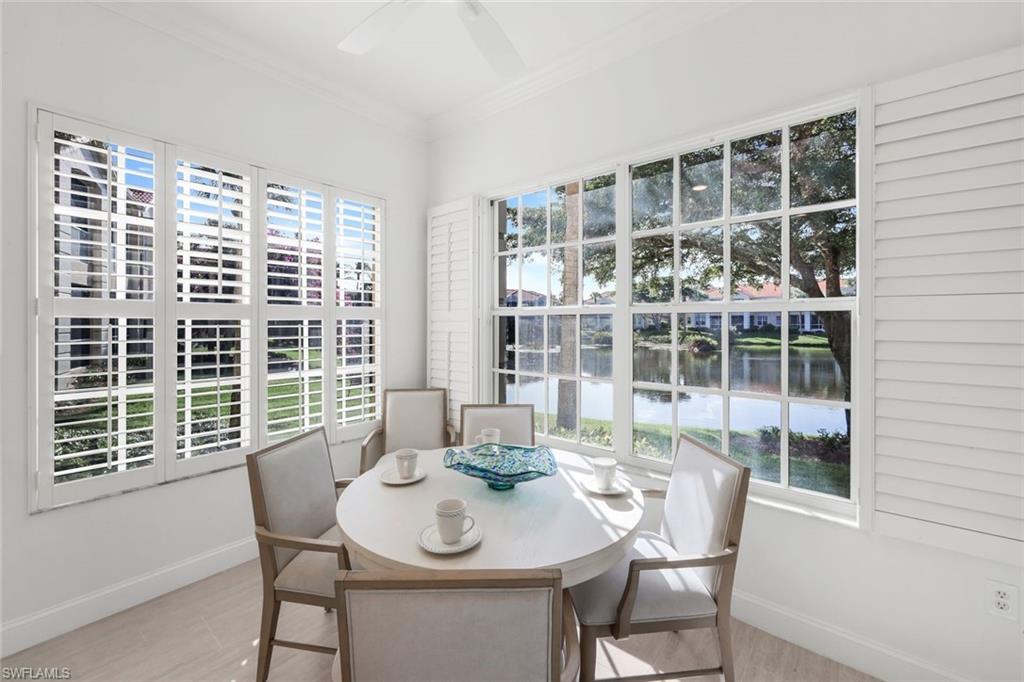 Experience the ease of condo living with the space, privacy, and comfort of a single-family home in this light-filled lakefront residence located in The Hamptons at Bonita Bay. Thoughtfully designed with a flowing layout and a serene coastal motif, this home offers two spacious bedrooms, and a den/flex space for guests, a home office, or additional living space, and 2.5 bathrooms. Sunlight streams in through plantation shutters, illuminating the open main living areas finished with tile flooring. The inviting floor plan includes a generously sized breakfast area, a dedicated dining room, and a spacious living room that opens seamlessly to a large lanai overlooking tranquil lake views—perfect for morning coffee or evening relaxation. The primary suite features peaceful lake vistas, ample closet space, and a well-appointed en-suite bath. The guest suite, located on the opposite side of the residence, offers quiet privacy. Completing the home is a two-car garage, adding convenience and storage. Residents of The Hamptons at Bonita Bay enjoy a private community pool. At the same time, Bonita Bay’s renowned amenities include a private beach park, marina, miles of walking and biking trails, optional golf and tennis memberships, fitness center, dining venues, and more—all just minutes from Gulf beaches, shopping, and dining. Light, bright, and coastal in style, this residence offers the best of Bonita Bay living.