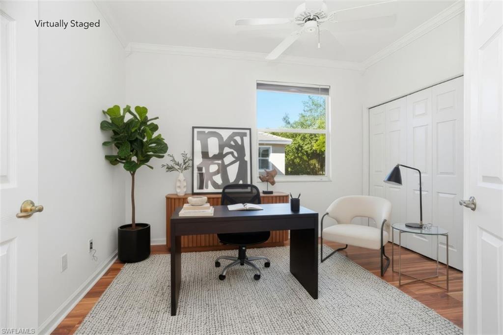Spacious & open condo with soaring ceilings nestled in North Naples’ sought-after Autumn Woods community, featuring coveted SOUTH/SOUTHWEST EXPOSURE FOR STUNNING SUNSETS and serene, lushly landscaped nature views —a true retreat for nature lovers. This residence offers a new flat modern tile roof, new HVAC (2022), and a private attached one-car garage with overhead storage racks, new epoxy floor, ceiling fan & attic. Inside, you’ll find a desirable lofty layout with an open floor plan and soaring ceilings, complemented by a neutral, calming color palette and abundant natural light. Finishes include tile and wood flooring throughout, high-end baseboards and crown molding, and plantation shutters. The well-appointed kitchen showcases crisp white cabinetry, a coordinating subway tile backsplash, ample storage, new modern microwave, and a pantry. Dual dining areas provide flexibility, with both a spacious formal dining room and a casual dining space seamlessly connected to the kitchen and living area. The expansive primary suite features a generous walk-in closet and an oversized en-suite bath with dual vanities, a large soaking tub, and a spacious walk-in shower. Step outside to the screened-in patio and enjoy tranquil nature views—an ideal space to relax and unwind. Additional enhancements include tinted windows above the entry door to reduce direct sunlight and improve energy efficiency. Perfectly located walking distance to Cedar Ridge’s heated pool with screened-in lanai & restrooms, on top of Autumn Woods’ main central amenities! Autumn Woods is a gated community offering resort-style amenities, including a community pool with lap lanes and spa, fitness center, tennis and pickleball courts, basketball, playground, community room, and 26 acres of pristine preserves with scenic walking trails and 20 lakes, along with a guarded gate and planned community events. Ideally located less than three miles from world-class beaches, Mercato, and Waterside Shops, just five miles to Fifth Avenue South, and situated within an A-rated school district.
