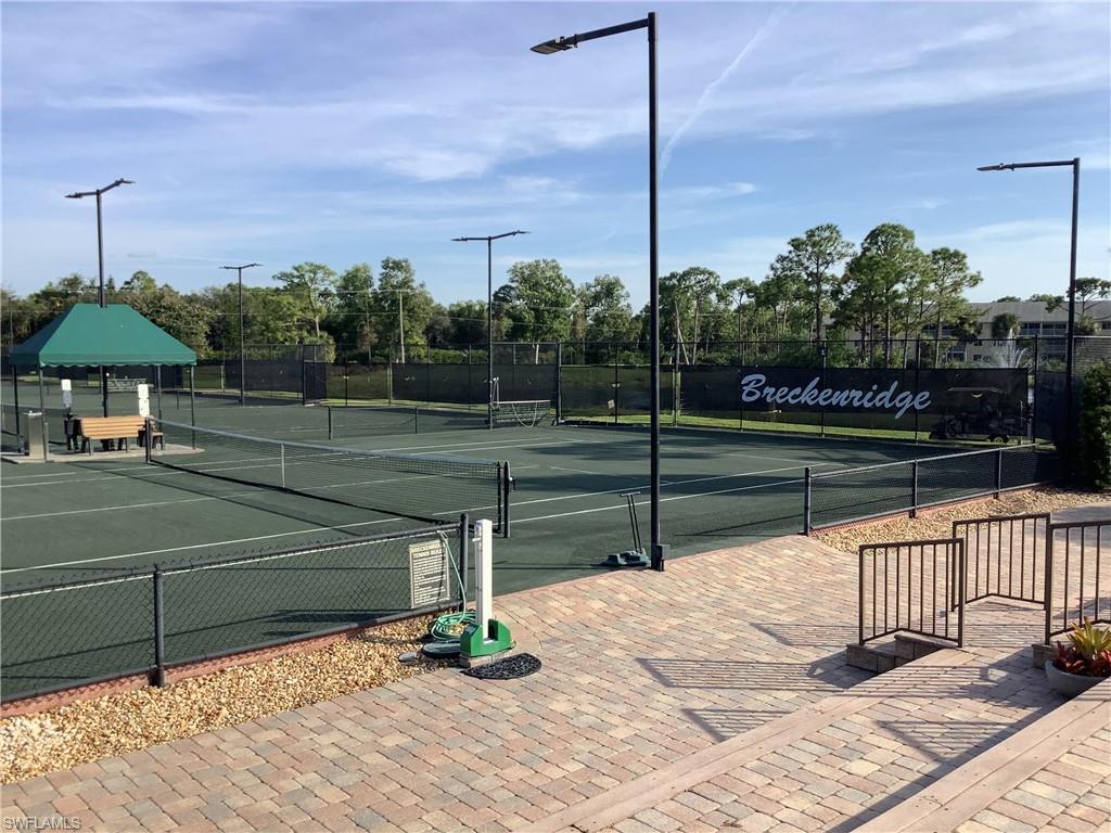 Breckenridge condo in the heart of Estero with beautiful lake and golf course views. Open floor plan combines kitchen, great room, and bonus seating area. Meticulously maintained and no remodeling needed. White kitchen cabinets, stainless French door fridge, high level carpet, custom paint colors. From the great room, 4 panel sliders lead out to the screened balcony offering stunning views and allowing bright natural light. Storm shutters on lanai. Preserve II has a fantastic location near the main gate - Sprouts Market, Starbucks, and Texas Roadhouse are a quick bike ride away. A private covered parking space and storage closet are included. Breckenridge is a bundled 18 hole par 3 golf community with Har Tru tennis courts, pickleball, bocce, and 5 community pools. The Clubhouse keeps a busy social calendar with fitness activities, card games, parties, bingo, and more!