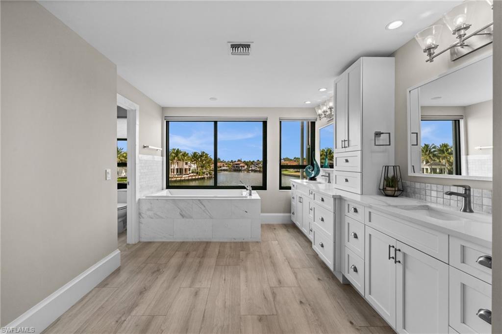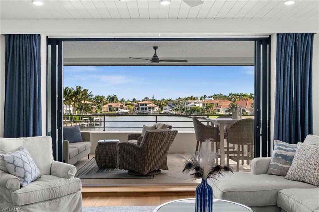 Experience the pinnacle of coastal luxury in this exquisitely renovated 3 bedroom waterfront residence on top of the waters of the Venetian Bay, where breathtaking water views and unforgettable Gulf sunsets set the backdrop for refined Naples living. Offered fully furnished and masterfully redesigned from Sand Dollar Award winner Midwest Developers LLC, this elegant home showcases meticulous craftsmanship and thoughtful design throughout. Expansive windows capture sweeping bay views from every room, allowing you to savor both tranquil sunrises and glowing sunsets. NO ASSESSMENTS! All have been paid in full! The exterior of the development has been repainted, new roof, new pavers, gunite in pool, new tile and pool coping.....a beautiful modernization of this impressive private island development! This private residence offers the rare convenience of an under-building garage with two dedicated parking spaces, additional storage, and a private elevator entrance for seamless access. Just steps away, enjoy exclusive access to one of Naples’ premier beaches via a private beach entry directly across the street. Venetian Village is right next door, placing over 60 upscale boutiques, cafés, and dining destinations within an easy stroll. For boating enthusiasts, access to the blue Gulf waters. This unit does NOT include a boat slip but it is possible to lease or purchase one separately. This is a rare opportunity to own a fully reimagined waterfront retreat in one of Naples’ most desirable locations—where luxury, lifestyle, and location converge.