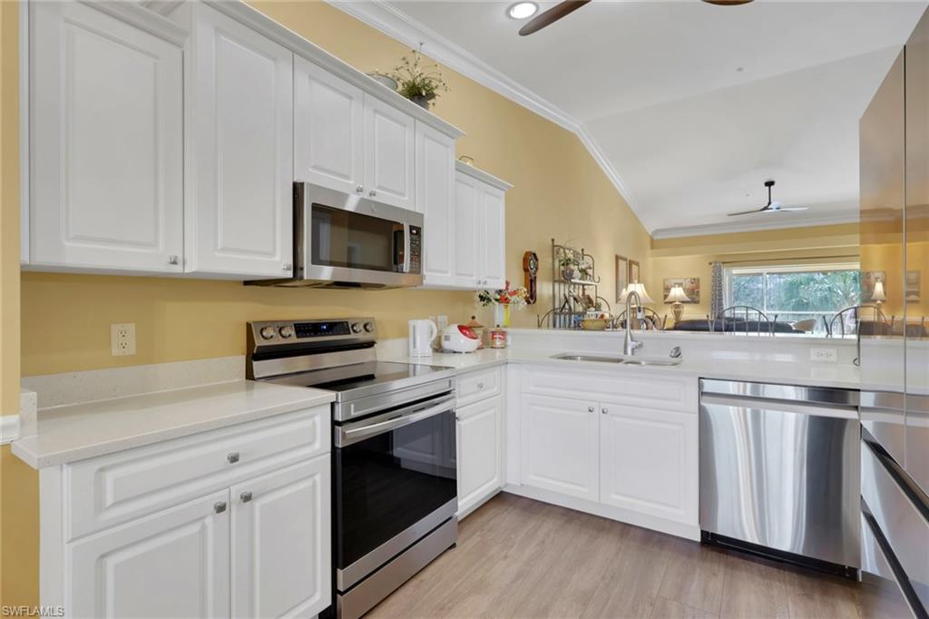 This stunning residence boasts breathtaking panoramic views of both the golf course and a tranquil lake, creating a picturesque backdrop for your daily life. Inside, you'll find the practical elegance of Coretec LVP flooring extending throughout, a testament to thoughtful design and lasting quality. The bathrooms have been meticulously upgraded, offering a touch of modern luxury and enhanced comfort, and all countertops have been upgraded with high quality quartz. Rest easy knowing your home is fortified with hurricane-proof windows and doors sourced from Florida's premier supplier, providing an essential layer of security. Beyond your private oasis, a world of amenities awaits. An inviting swimming pool is conveniently located nearby, perfect for a refreshing dip. The impressive clubhouse serves as the heart of the community, featuring two charming outdoor dining spaces, including a sports bar, for memorable gatherings, and a fully equipped gym with a variety of exercise classes to keep you active and energized. Golf enthusiasts will delight in the included golf membership, granting access to the pristine fairways and challenging greens of the championship Cedar Hammock course. Beyond the community's amenities, you'll find yourself mere minutes from the pristine Gulf beaches, the renowned dining and shopping of 5th Avenue, and all the vibrant attractions that make Southwest Florida a truly coveted destination. This is more than just a home; it's an invitation to embrace a lifestyle of unparalleled beauty, convenience, and enjoyment.
