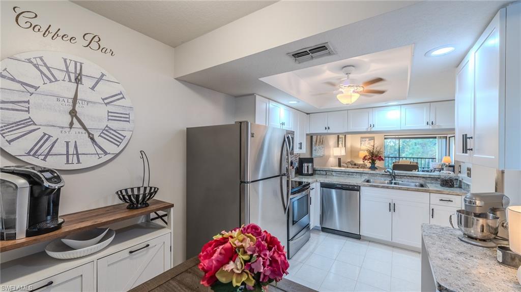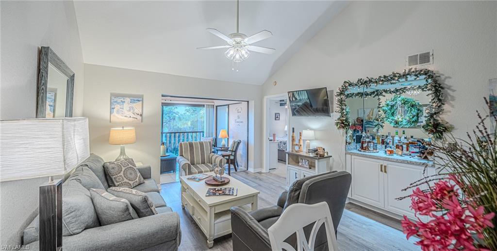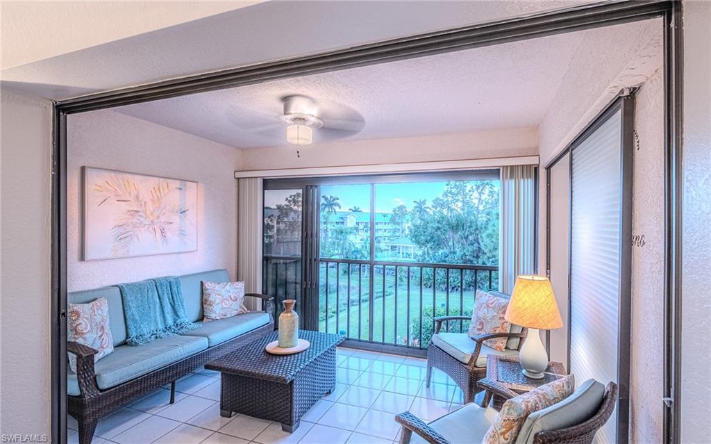 Discover Breckenridge, a highly sought-after bundled golf & tennis community with NO GREEN FEES in the heart of Estero, where resort-style living meets an active Southwest Florida lifestyle. Nestled among lush tropical landscaping, scenic lakes, and beautifully maintained fairways. Nicely updated top-floor 2BR/2BA Bayview model offered turnkey with beautiful golf course and lake views overlooking the 12th tee. The enclosed, air-conditioned lanai with plexiglass sliders adds valuable extra living space. Recent updates include new kitchen shaker cabinet fronts and hardware, luxury vinyl flooring, updated bathroom vanity, mirror and lighting, new stackable washer/dryer, and a new A/C compressor in 2025. Building roof replaced in 2023. Ideally located near one of five community pools and close to the clubhouse and amenities. Breckenridge is a bundled golf community , featuring an 18-hole golf course, very active tennis club with 8 Har-Tru courts, 3 pickleball courts, bocce, 5 swimming pools, and a vibrant clubhouse with daily activities. Prime Estero location between Naples and Fort Myers. Minutes to beaches, airport, shopping malls, dining, library, and state park. Water, cable, and WiFi included.