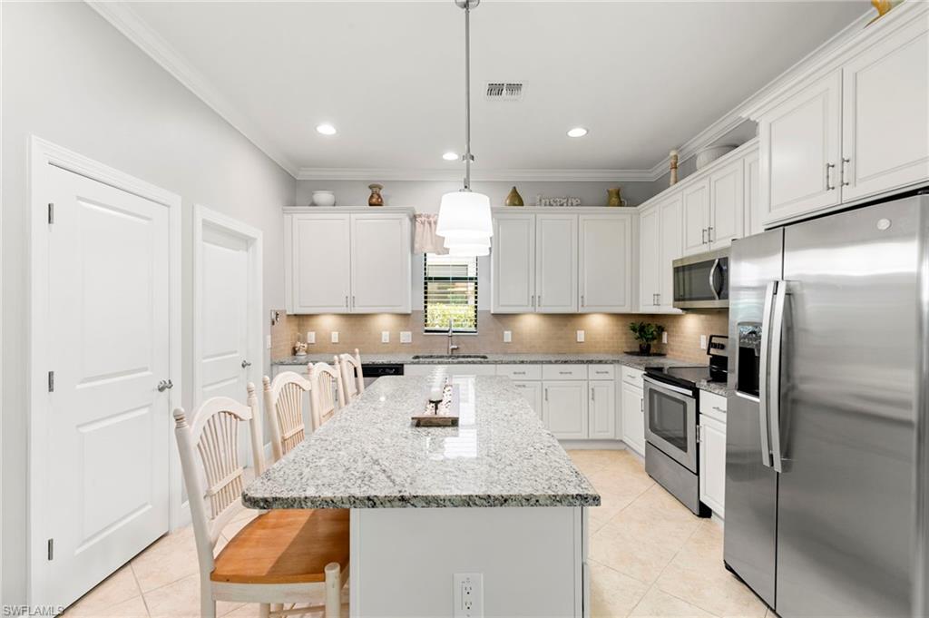 Welcome to 1350 Kendari Terrace in Artesia. This 2016-built home is the epitome of the Naples lifestyle, offering 3 spacious bedrooms, 2.5 baths, and a 2-car garage. The heart of the home is a gourmet kitchen featuring sleek cabinetry with soft-close doors, premium granite countertops, and a large island perfect for entertaining. The light-filled open layout flows seamlessly to the oversized screened lanai, where you can enjoy peaceful lake vistas and the gentle Florida breeze in total privacy. Residents enjoy an award-winning 9,215 sq. ft. clubhouse, resort-style pool, fitness center, theater, and more. Located in a low-maintenance, gated community nestled between the luxury of downtown Naples and the relaxation of Marco Island. Meticulously cared for and ready for immediate occupancy—experience the perfect blend of style and serenity.