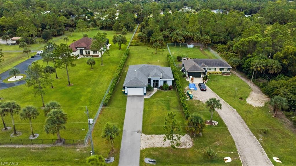 Offering exceptional value, this well-maintained estate home delivers comfort with a bright, coastal-inspired feel. Featuring 3 bedrooms and 2 baths, the residence offers an open floor plan ideal for everyday living and entertaining. Natural light enhances the living and dining areas, while a breakfast nook adds warmth and functionality. The modern kitchen is appointed with stainless steel appliances, wood cabinetry, and quartz countertops, complemented by matching quartz finishes in the bathrooms. Details such as crown moulding, a washer and dryer, and a full sprinkler system elevate the home’s quality and ease of living. Outside, a large, covered terrace is perfect for relaxing and enjoying serene front and rear views. The property is beautifully enhanced by tropical landscaping, Calusa-lined hedges, a mostly cleared lot, and a paved driveway leading to the 2-car garage, offering privacy and curb appeal. Set on a spacious 1.14-acre, 100% upland lot, this home is ideally located just minutes from a new grocery store and nearby amenities, within a rapidly growing area surrounded by new construction and development. Listed below appraised value, this is a rare opportunity.