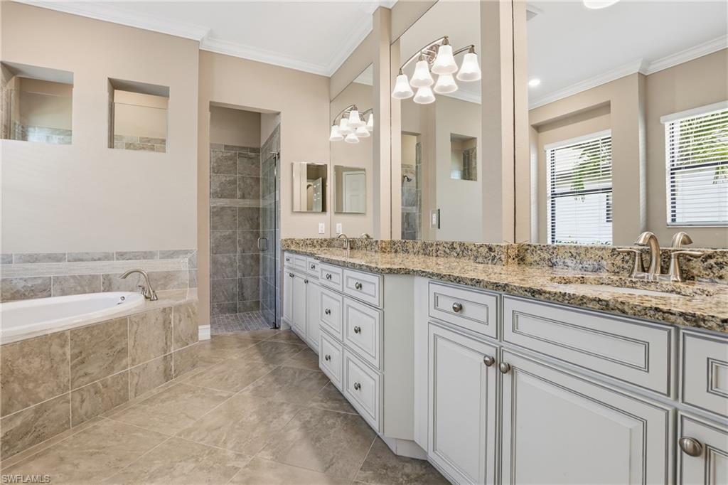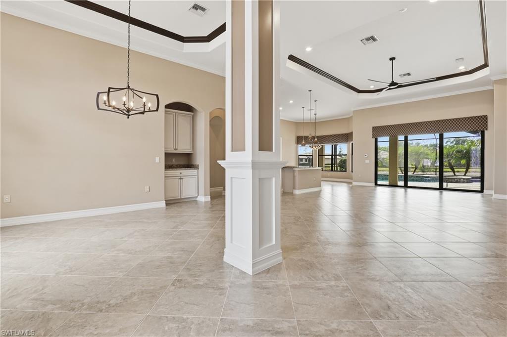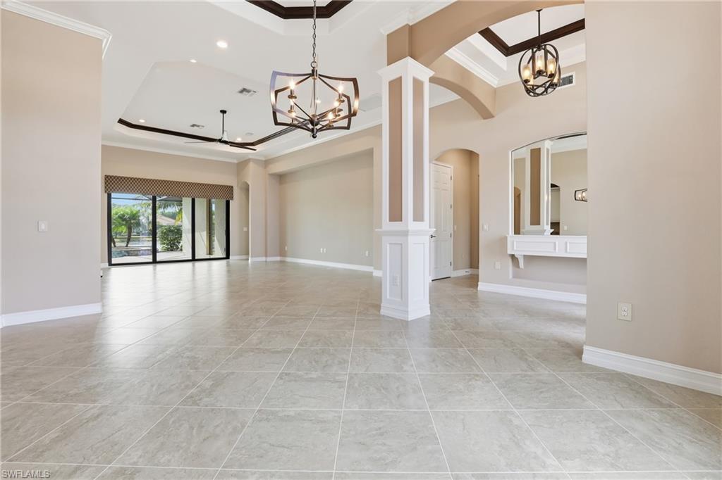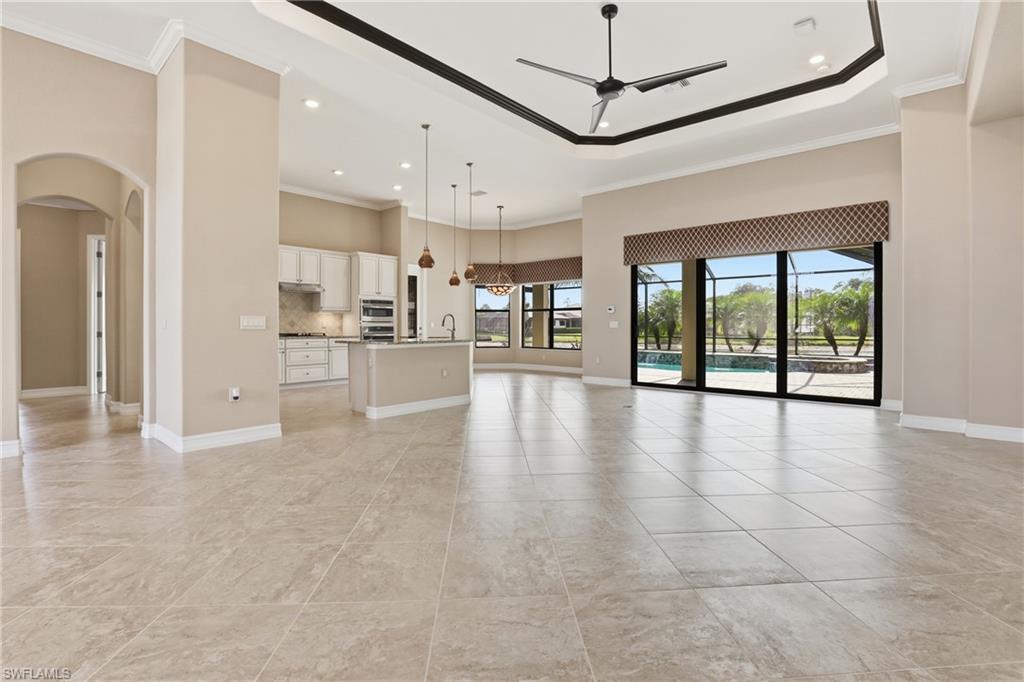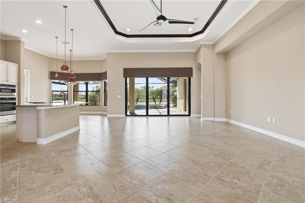 PRICED TO SELL! Look no more. This elegant 2019-built residence is ideally positioned on a rare, oversized wraparound lakefront lot with coveted southern exposure, delivering stunning water views from multiple angles and exceptional natural light throughout the home. Soaring ceilings and refined architectural details that enhance the expansive, open-concept living space. Impact-resistant windows and doors are installed throughout, providing both peace of mind and energy efficiency. The chef’s kitchen is equipped with premium stainless steel appliances and designed to complement both everyday living and entertaining. Natural gas powers the cooktop, tankless water heater, dryer, outdoor grill, and the heated pool and spa—an added luxury rarely found. Porcelain tile flooring is installed on the diagonal throughout the home, adding a sophisticated and cohesive finish. The screened lanai features a picture-frame enclosure that perfectly showcases the serene wraparound lake views. The stately front elevation is accented by professionally installed landscape lighting, and the spacious three-car garage comfortably accommodates larger vehicles. Located within the gated, low-density community of LaMorada, residents enjoy resort-style amenities including pickleball and tennis courts, an elegant clubhouse with a lake-view restaurant and poolside seating, theater room, culinary arts center, fitness and yoga studios. Conveniently situated in North Naples, just minutes from shopping, dining, and daily conveniences. The pristine, sugar-sand beaches of the Gulf are easily accessible via Immokalee Road. This property combines luxury living, location, and a great investment opportunity in one exceptional offering.