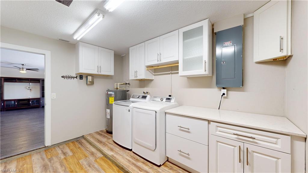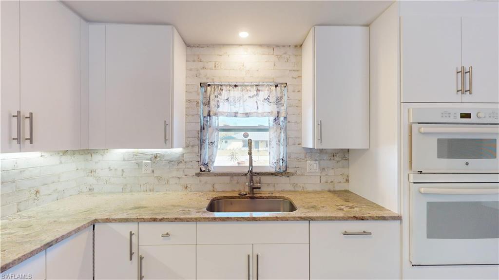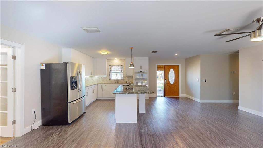 Welcome to a truly standout property in Bonita Springs—set apart by not one, but two side-by-side lots totaling approximately 0.38 acres in a highly desirable non-HOA community. This fully renovated home offers a level of space, freedom, and versatility that is increasingly hard to find. Inside, the residence has been completely updated and features continuous luxury vinyl flooring throughout for a clean, modern look with everyday durability. The stylish kitchen is finished with granite countertops, and the primary suite delivers a spa-like bathroom experience with dual shower heads. What truly sets this property apart is its exceptional outdoor living and usable land. A screened lanai and paved rear deck create inviting spaces for entertaining or relaxing, while the expansive grounds provide room to breathe—and room to grow. The paved driveway plus additional side parking easily accommodates multiple vehicles, boats, trailers, RVs, or work equipment. Ideal for buyers who need extra space, the property includes thoughtful upgrades such as a whole-home surge protector, transfer switch for generator hookup, additional 200V electrical outlets suited for RVs or specialty equipment, a two-drawer refrigerator in the laundry room, and an exterior camera system for added peace of mind. The included cleared bonus lot 27506 Playa del Rey Ln. (Parcel ID 34-47-25-B4-01304.0020) is a rare and valuable asset, offering endless possibilities—expand the home, add a pool or guest house, create dedicated storage, accommodate campers or recreational vehicles, or support a specialty business or hobby that requires extra land. Whether you’re seeking flexibility, privacy, or space to work and play, this two-lot property delivers unmatched opportunity. All of this in a prime Bonita Springs location, just minutes from beaches, shopping, dining, and entertainment—with no HOA restrictions to limit your vision.