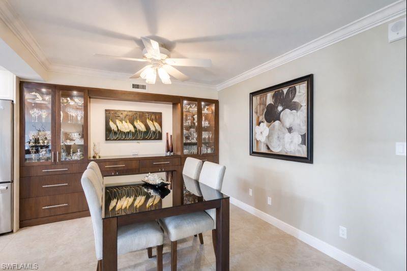 Experience the ultimate Naples waterfront lifestyle in this beautifully updated boating residence, perfectly positioned on Doctors Bay in the highly desirable Moorings. This is a property that truly needs to be seen in person to fully appreciate the quality, setting, and lifestyle it offers. Renovated waterfront units in this location are rarely available, and opportunities like this do not come along often. With the Gulf’s sugar-sand beaches just across the street and boat docks available for lease, this home delivers a unique blend of beachside and bayfront living. Conveniently accessed via elevator from your covered parking space, this second-floor 2-bedroom, 2-bath residence features an open, airy layout designed for relaxed coastal living. Floor-to-ceiling impact-resistant sliders frame tranquil water views and flood the home with natural light, creating a seamless connection between indoor comfort and the surrounding waterfront scenery. The interior has been completely reimagined with tasteful, modern upgrades throughout. Highlights include large-format tile flooring, crown molding in the main living areas, and thoughtfully designed custom built-ins in both the dining space and primary suite—offering added storage rarely found in comparable units. The kitchen is a true showpiece, appointed with quartzite countertops, stainless steel appliances, and a self-cleaning steam double oven, making it ideal for entertaining or everyday enjoyment. Both bathrooms have been fully renovated with refined finishes that complement the home’s coastal aesthetic. Step out onto your private balcony to enjoy gentle bay breezes and a glimpse of the Gulf beyond, or relax at the community pool and recreation area overlooking Doctors Bay—an ideal vantage point to watch passing boats and take in colorful Southwest Florida sunrises. Additional conveniences include a designated carport space and a well-maintained community poised for upcoming enhancements such as fresh exterior paint, new railings, updated lighting, gutters, and walkways. Set within one of Naples’ most coveted waterfront neighborhoods, this residence offers effortless access to world-class boating, pristine beaches, fine dining, and upscale shopping. Buyers seeking a move-in-ready waterfront property in the Moorings are encouraged to act quickly, as renovated Bayfront residences with immediate beach access are seldom offered. Whether cruising the waterways, walking the beach, or simply enjoying the peaceful bayfront setting, this is coastal living at its finest—where the Bay and the Gulf come together.