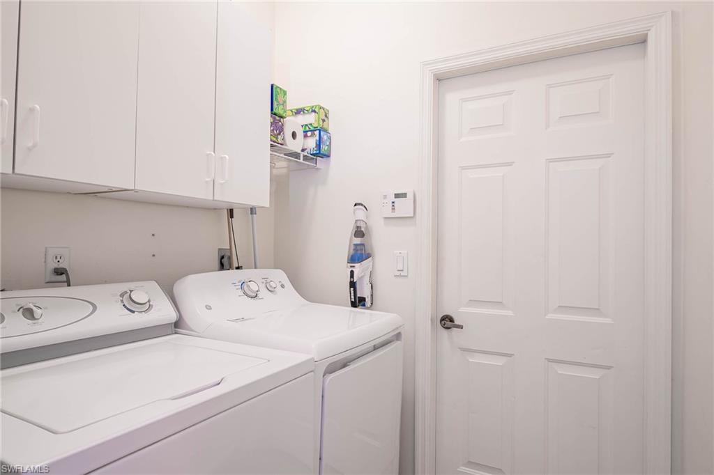 This spacious, well-cared for 2 bedroom, 2 bath home with a 2-car garage offers a roomy den with double closets just outside its door - ideal for those overflow guests, a bright and roomy eat-in-kitchen with generous counter space and a window above the sink for additional natural light. Both bathrooms have been updated. You'll love the tile flooring throughout, as well as the vaulted ceilings adding another dimension of spaciousness. The oversized garage has an epoxy floor for a nice clean environment to enjoy any of your hobbies. Other amenities include a water softener, security system and 6-year young air-conditioner. The expansive lanai offers a serene setting with beautiful preserve views and is partially roofed for dining and partially exposed for sunbathing. Country Creek is a most welcoming community with an 18-hole bundled golf course with low cart fees, a full service restaurant and bar, and an outdoor patio bar to enjoy your favorite lunch or a refreshing beverage after your golf game or that mid-day swim. Social activities are abundant in this friendly community offering 5 pools, a brand new spa for 10, golf and tennis leagues, bocce leagues, Wii bowling and a vibrant bar ideal for Sunday afternoon football fun! Other activities include book clubs, knitting circles, card clubs, volunteer groups and endless celebrations at the clubhouse. Location is perfect between Naples and Ft. Myers and minutes from RSW Airport, post office, library, casual and fine dining. Coconut Point and Miramar Outlets and, of course, the beautiful beaches of Southwest Florida. This single family home is offered Turnkey. A great opportunity!