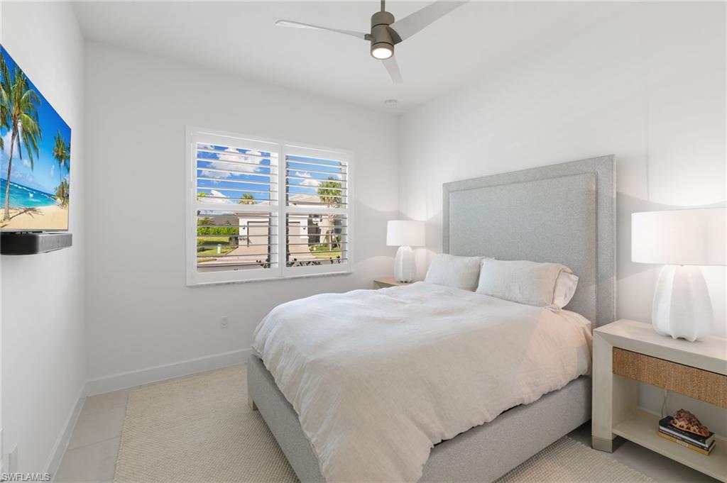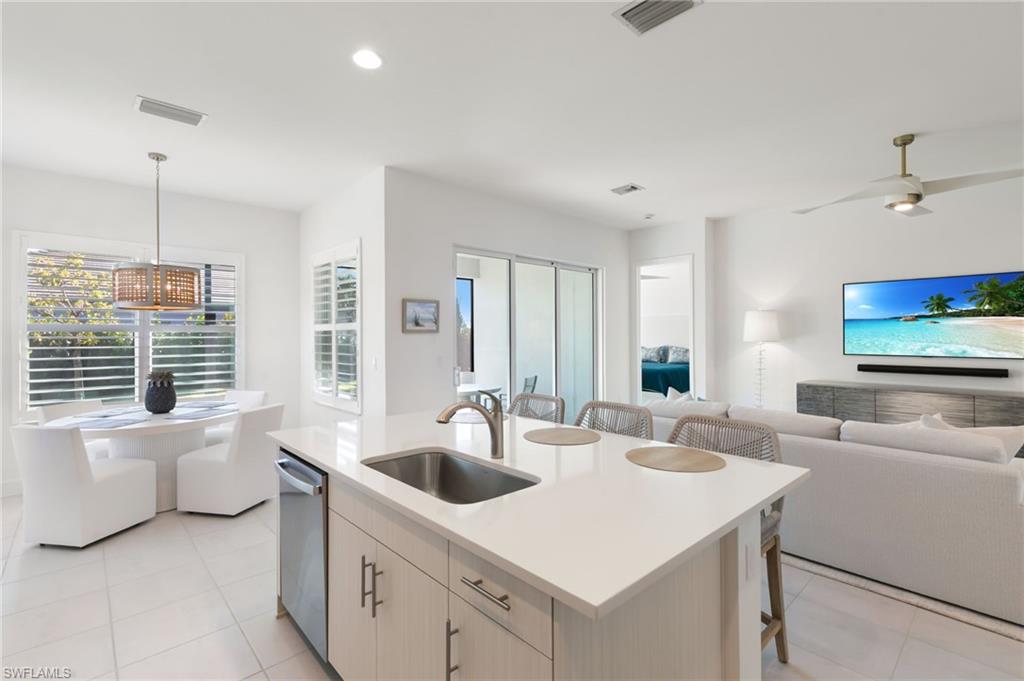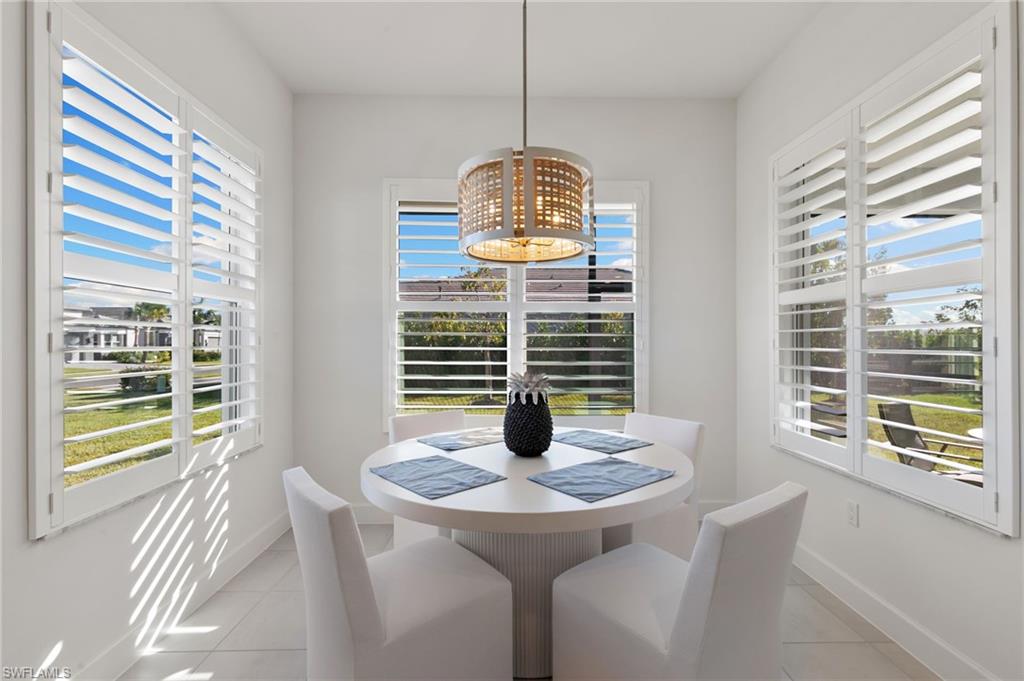 Discover refined luxury in this stunning "Sandpiper" floor plan home at 12372 Dahlia Court, located within the prestigious gated 55+ community of Valencia Trails in North Naples, Florida. Boasting approximately 1,660 square feet of elegantly appointed living space, this 2-bedroom + den, 2-full-bathroom residence offers the perfect blend of sophistication, comfort, and modern upgrades on an exceptional Southern facing corner lot. Step inside to an open, light-filled interior featuring seamless tile flooring throughout—no carpet in sight—for effortless maintenance and timeless appeal. Plantation shutters grace the windows, adding a touch of natural light to beam throughout while providing privacy and light control. All closets and cabinets have been meticulously upgraded for superior organization and style, complemented by contemporary lighting fixtures and ceiling fans that elevate every room. The heart of the home is designed for both relaxation and entertaining, with a versatile den ideal for a home office, hobby space, or guest overflow. Enjoy peace of mind with full impact-resistant windows and doors, a whole-home Generac generator for uninterrupted power, and a smart thermostat for energy-efficient climate control. Outside, this premium corner homesite shines with a spacious backyard nearly akin to a double lot—perfect for creating your private oasis, whether adding a custom pool, lush landscaping, or expansive outdoor living area. The oversized driveway provides ample parking, while the 2-car garage features a durable epoxy floor finish for a polished, low-maintenance space. Residents of Valencia Trails indulge in a resort-style lifestyle centered around a magnificent 43,000-square-foot clubhouse, complete with a full-service restaurant and bar, state-of-the-art fitness center, social halls, arts studios, and a vibrant calendar of events. Outdoor amenities abound, including multiple pools (resort-style, lap, and resistance), a dedicated racquet club with tennis and pickleball courts, bocce, walking trails, and more—all set amidst beautifully landscaped grounds. Conveniently located just minutes from pristine Gulf beaches, world-class dining, shopping, and golf, this home offers the ultimate in Southwest Florida living. Experience the pinnacle of active adult luxury—schedule your private showing today!