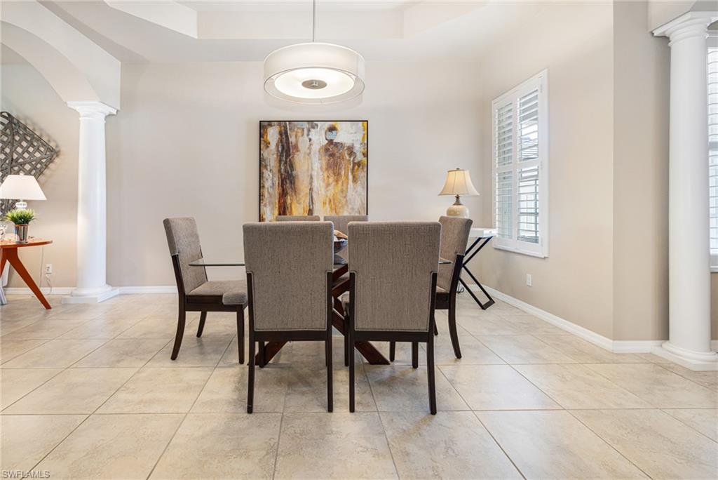 Immaculate, refined, and designed for effortless Florida living, this second-floor carriage home lives like a designer model while offering nearly 2,900 square feet of beautifully appointed living space. Recent upgrades include brand-new roofs, electric roll-down hurricane shutters, and a fully remodeled kitchen that anchors the home with both style and function. The expansive great-room floor plan is enhanced by soaring 10- and 11-foot ceilings, elegant architectural details, tray and coffered ceilings, graceful archways, and classic columns that add depth and character throughout. The kitchen is a true centerpiece, featuring granite countertops, extended cabinetry, a wine refrigerator, and stylish tile and backsplash selections, flowing seamlessly into the main living areas—ideal for entertaining or relaxed everyday living. Step out to the oversized screened lanai and take in tranquil lake views that create a calming, private backdrop for morning coffee, sunset cocktails, or simply unwinding while enjoying the breeze—Florida lifestyle living at its finest. The primary suite is a serene retreat with space for a sitting area or home office, generous walk-in closets, and a peaceful, spa-like atmosphere, while the additional bedrooms are thoughtfully positioned for comfort and flexibility. Constructed to accommodate a future elevator and complemented by an attached two-car garage plus abundant storage throughout, this home offers both convenience and long-term adaptability. Set within a gated community featuring a tropical lagoon-style pool, expansive clubhouse, fitness center, media, billiard, and card rooms, and an active yet low-fee HOA, the location completes the package—just minutes from Coconut Point shopping and dining, Florida Gulf Coast University, Southwest Florida International Airport, and the Gulf beaches, with everyday conveniences close at hand for a truly effortless Southwest Florida lifestyle.