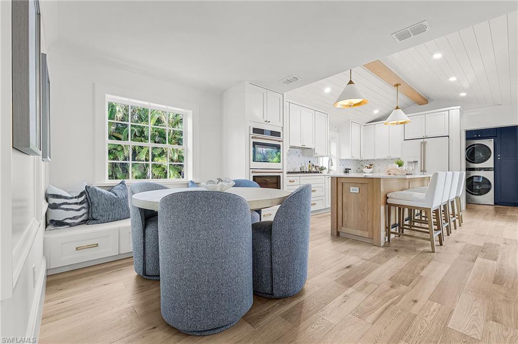 Welcome to 6155 Standing Oaks Ln, a breathtakingly reimagined estate located in the highly sought-after Oakes Estates of Naples. This exceptional 6-bedroom, 5-bathroom residence spans over 7,800 total sq ft and is situated on a private, gated 2.3-acre property that also includes a 2-bedroom, 1-bath guest house and an air-conditioned, designer-inspired “man cave” garage with a luxury full bathroom and nearly 1,000 sq ft of flexible space. This estate was fully renovated and blends timeless luxury with rock-solid construction and modern efficiency. It has crown molding, expansive windows with peaceful water views, and a bright, open layout. The chef’s kitchen is outfitted with quartzite countertops, marble backsplash, luxury appliances, a large center island, and abundant cabinetry. Retreat to the luxurious primary suite with vaulted ceilings, custom built-in closets, and a spa-inspired bathroom with dual vanities, soaking tub, and oversized double walk-in shower. Step outside to your private lanai with a sparkling pool and acres of green space. The long, royal palm-lined driveway and lush landscaping create exceptional curb appeal, while the new 70-year rated metal roof adds both peace of mind and insurance benefits. A 500-gallon underground propane tank is already installed and ready to support a whole-house generator. Upstairs guest house has its own private entrance (also accessible via the garage), making it ideal for guests, extended family, a live-in housekeeper, or even as a vacation rental. The entire 2.3-acre lot makes this property the ideal self-sufficient compound — with no HOA restrictions. Add a workshop, plant a garden or fruit trees, raise animals, or build additional structures to suit your vision. Every inch of this home reflects thoughtful design and quality craftsmanship. This is more than a home — it’s an extraordinary lifestyle opportunity in an A+ location and A rated schools. Whether you’re looking for a family compound, private retreat, or legacy estate, 6155 Standing Oaks Ln delivers unmatched value, space, and freedom.
