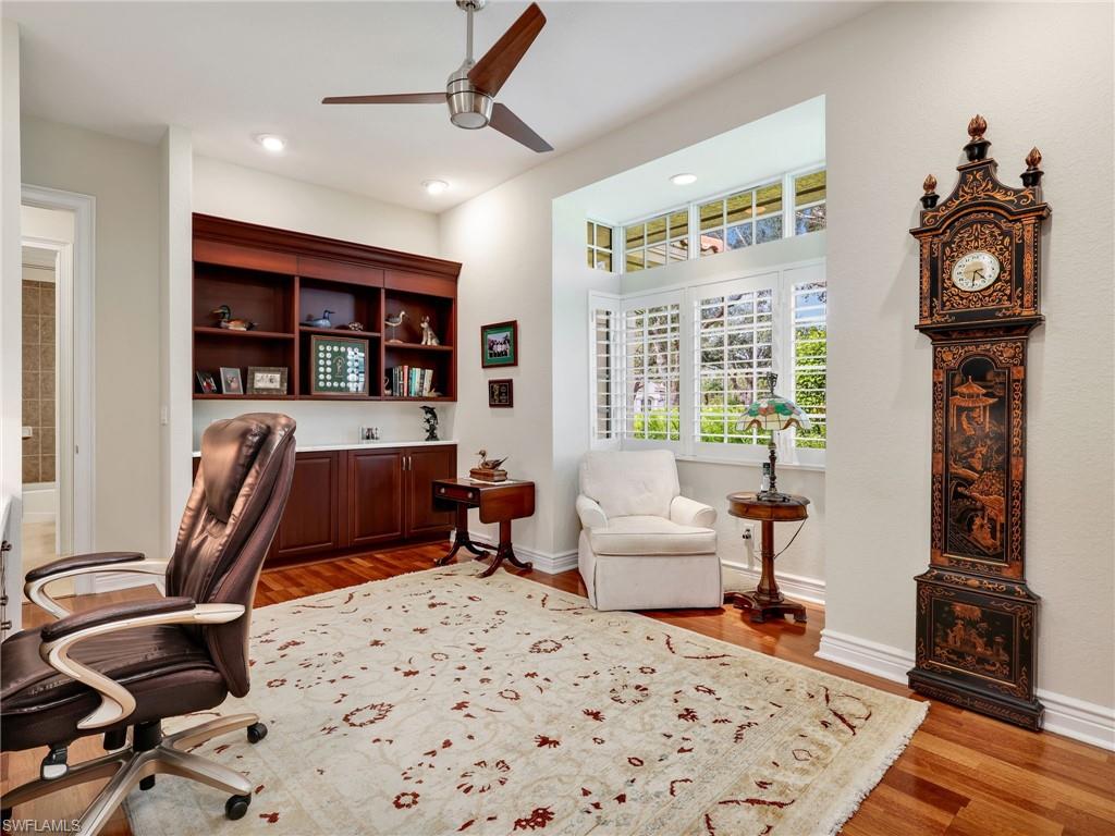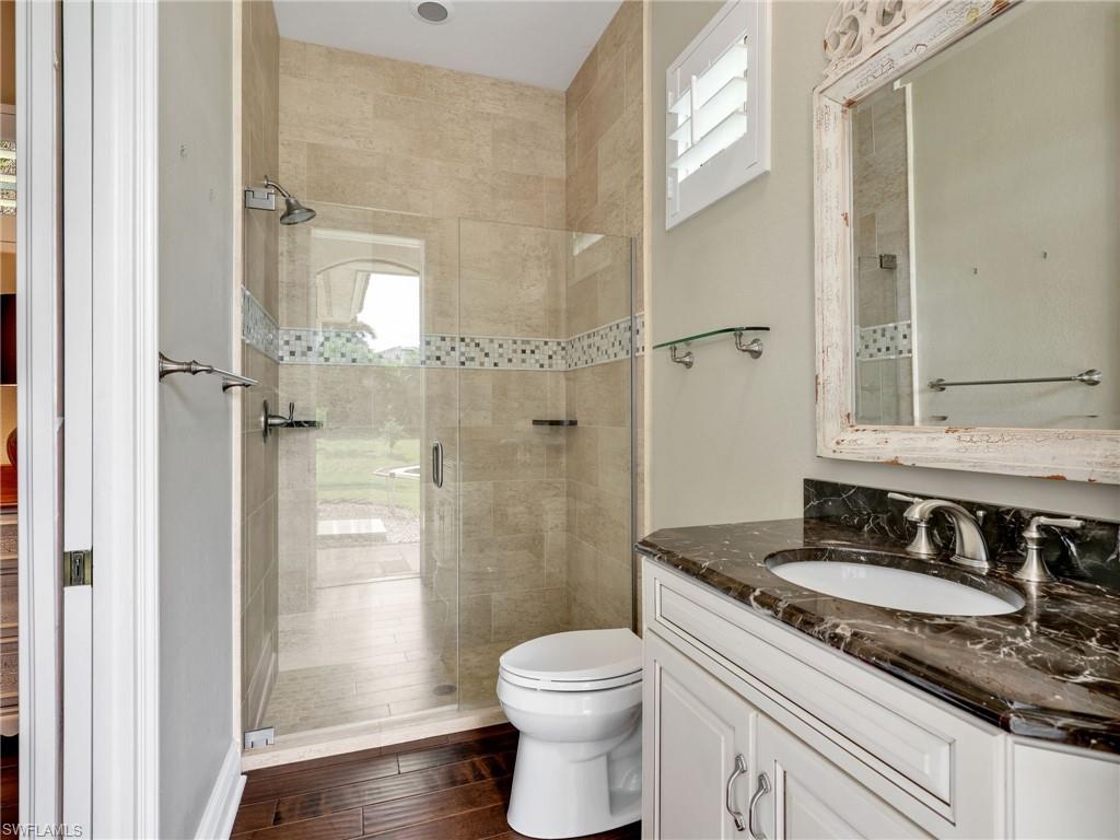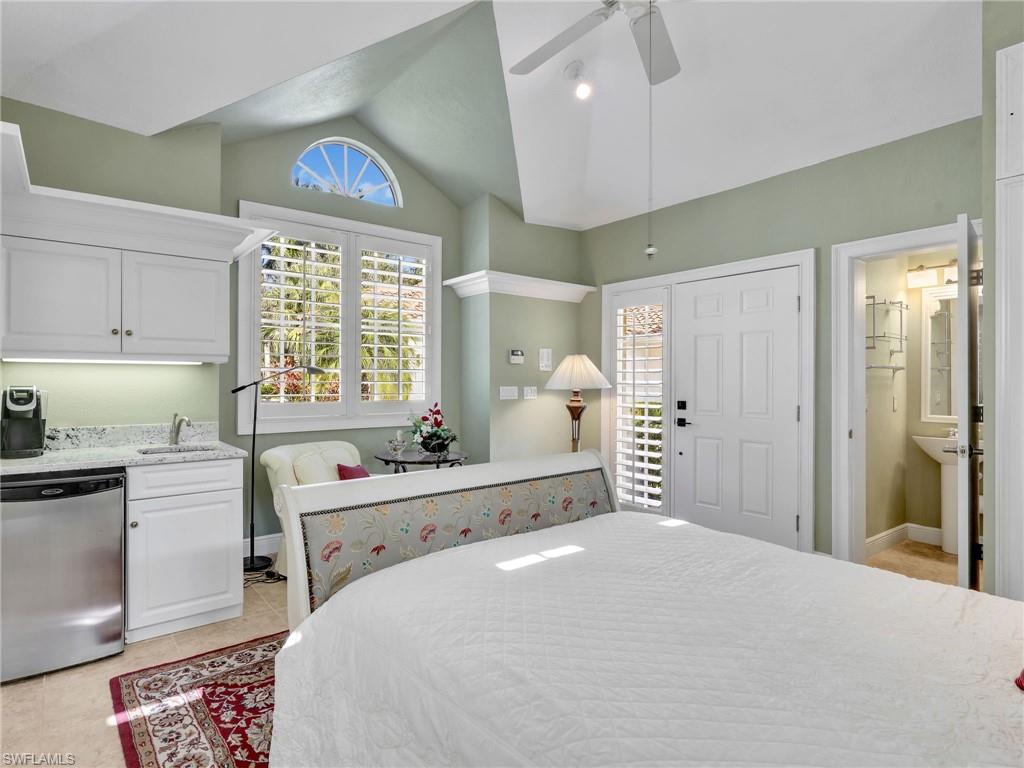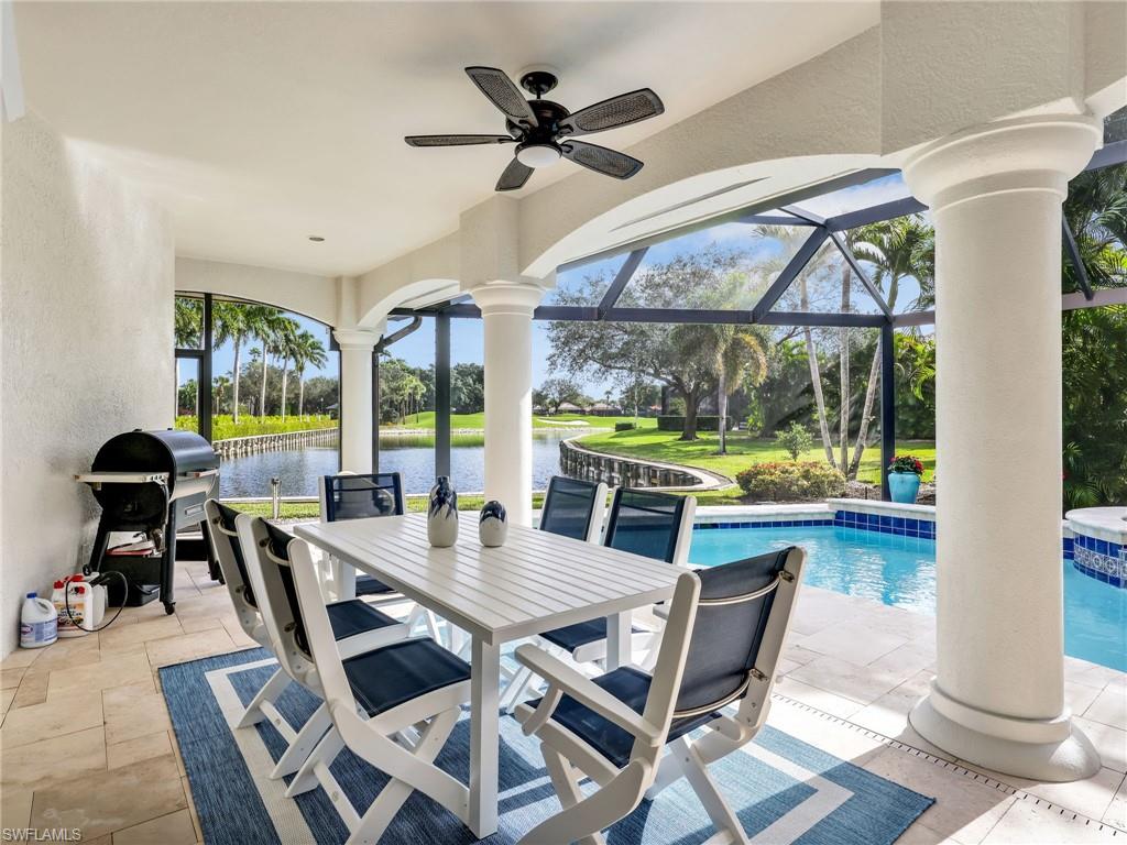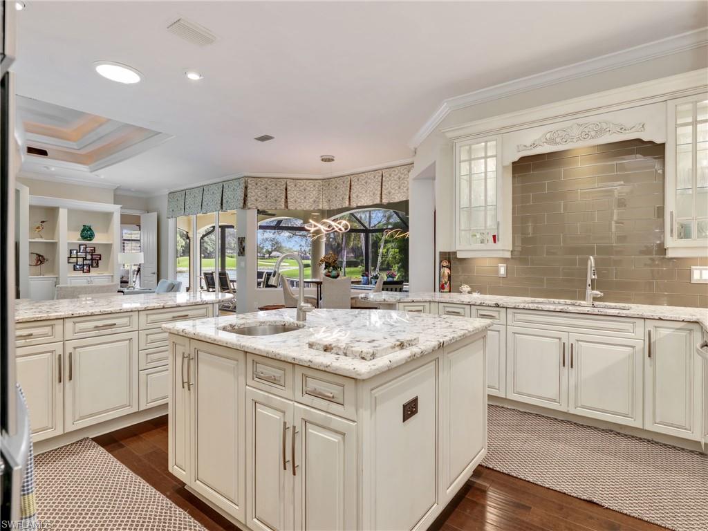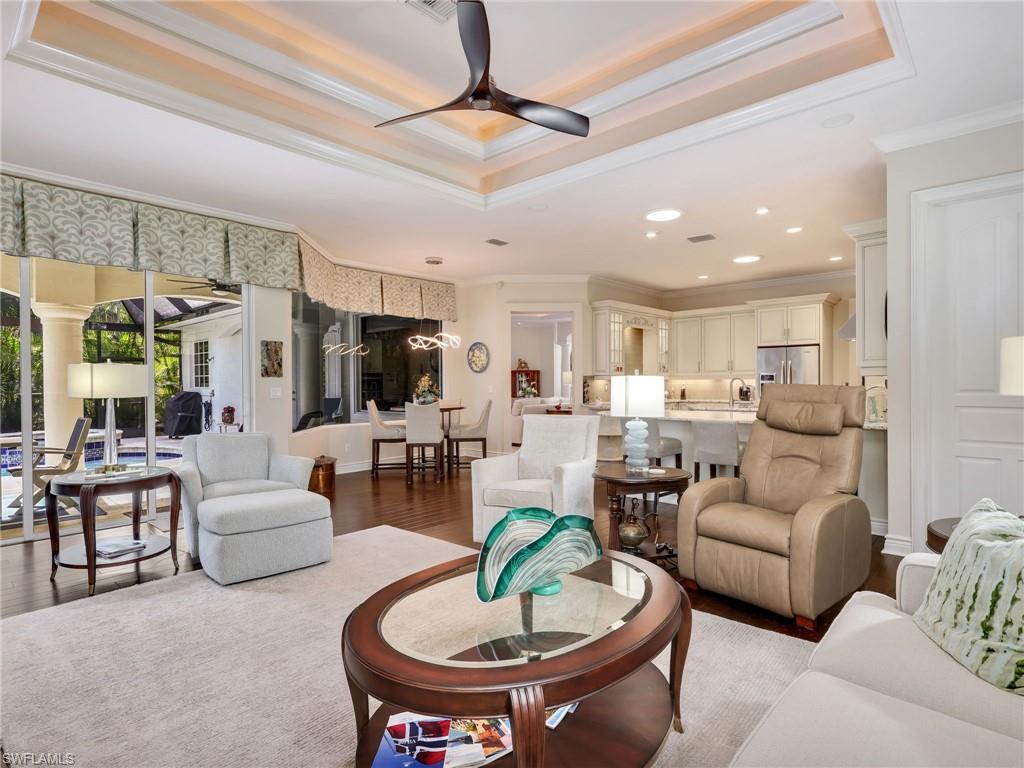 Thoughtfully designed for today’s lifestyles and impressively updated throughout, this exceptional residence in Kensington Golf & Country Club offers outstanding flexibility and privacy in a prime, central location, just minutes from Gulf beaches, Mercato, and the Naples Philharmonic. Adding exceptional versatility is the detached, private casita, complete with one bedroom, one full bath, ideal for multigenerational living, full-time staff or extended guest. Beyond guest use, the detached guest house provides the freedom to create whatever space best fits your lifestyle—home office, gym, recreation room, studio, or private retreat. The main home features 3 bedrooms plus a den/home office (easily convertible to a 4th bedroom) and 3.5 baths, with tray ceilings and newer cove lighting adding architectural interest throughout. The layout is intentionally designed around the pool, spa, and long lake views, allowing the home to naturally flow outward and creating a seamless indoor-outdoor connection ideal for enjoying multiple living spaces. Formal living and dining rooms provide elegant areas for entertaining, while the home opens into a spacious kitchen and family room with a casual breakfast nook for everyday living. The beautifully updated kitchen features refreshed cabinetry, newer countertops, and stylish backsplash. The primary suite is highlighted by a fully renovated en suite bath with a freestanding soaking tub, walk-in shower, and a split-bedroom layout that provides separation and privacy from the guest accommodations. Each guest bedroom is nicely sized with its own bath, including the den/home office. Outdoor living shines, with a pool and spa framed by a picture-window screen enclosure that preserves unchanging, tranquil lake views. Covered lounging areas provide shade, while open sun decks invite relaxed Florida living. Notable upgrades include a pool heater (2024), travertine lanai resurfacing (2024), resurfaced garage floor (2024), generator (2023), lanai cage with picture window screen(2021), and a newer roof and A/C (within the last 7 years). Impact glass and shutters on the main residence, casita, lanai, and front entry. Bright, open, and meticulously maintained, this residence pairs thoughtful design with meaningful updates—perfect for those seeking flexibility, privacy, and a premier Naples location.