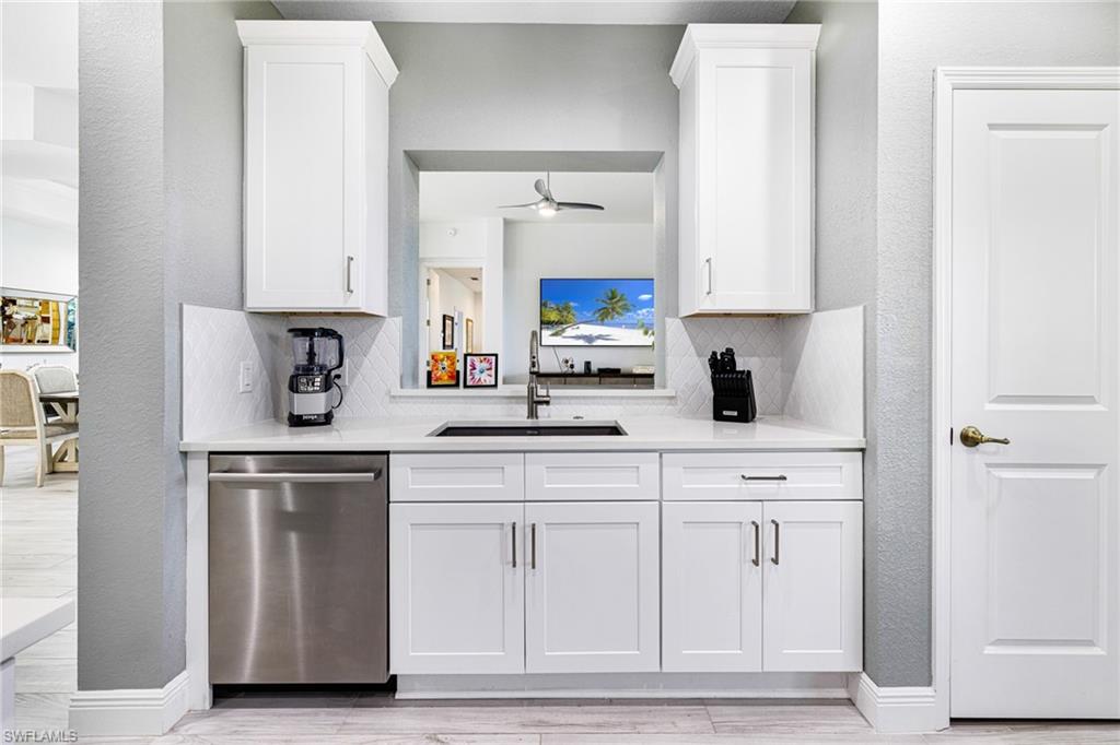 Completely renovated and reimagined, this stunning Sotheby floor plan coach home in the prestigious West Bay Club is a masterpiece of modern luxury and coastal living. Located in one of the most desirable settings within the community, this first-floor end unit offers breathtaking views of the serene River Park, just steps away from the boat launch, kayaks, and scenic walking paths. For added convenience, the home is also a short stroll to the community pool, making it the perfect blend of relaxation and recreation. Living like a single-family home, this residence boasts three spacious bedrooms with ample storage, 2.5 beautifully appointed baths, and a 2-car attached garage. Thoughtfully redesigned after Hurricane Ian, the home showcases impeccable craftsmanship with volume and coffered ceilings, elegant wood-like tile flooring, and designer lighting. The kitchen is a chef’s dream, featuring sleek quartz countertops, stainless steel appliances, a dedicated breakfast nook, and a formal dining area for entertaining. The luxurious master suite offers a tranquil retreat with a spa-like bathroom that includes dual sinks, a soaking tub, and a glass-enclosed walk-in shower. Every detail of this home has been curated for both comfort and style. West Bay Club provides an unparalleled lifestyle with a host of world-class amenities, including an 18-hole championship golf course, a private Beach Club on the Gulf of Mexico with dining, and direct Gulf access for boating enthusiasts. Outdoor lovers will appreciate the dog park, pickleball courts, basketball court, playground, and a tennis club featuring Har-Tru courts. Fitness and wellness are at the forefront with a state-of-the-art fitness center and a Jr.-sized Olympic pool. With its prime location, exclusive amenities, and meticulously renovated interiors, this home invites you to embrace the sophisticated yet relaxed lifestyle that defines West Bay Club. Whether you're an avid golfer, boater, or beach lover, this property is a gateway to your Florida dream.