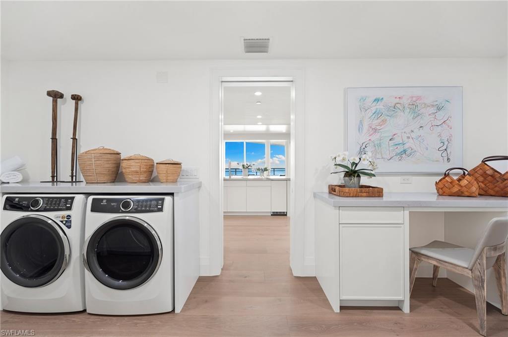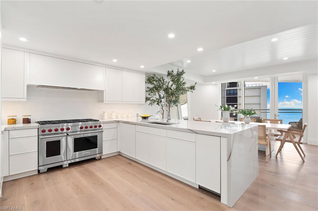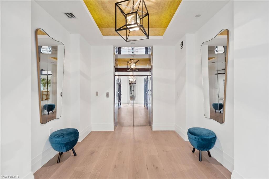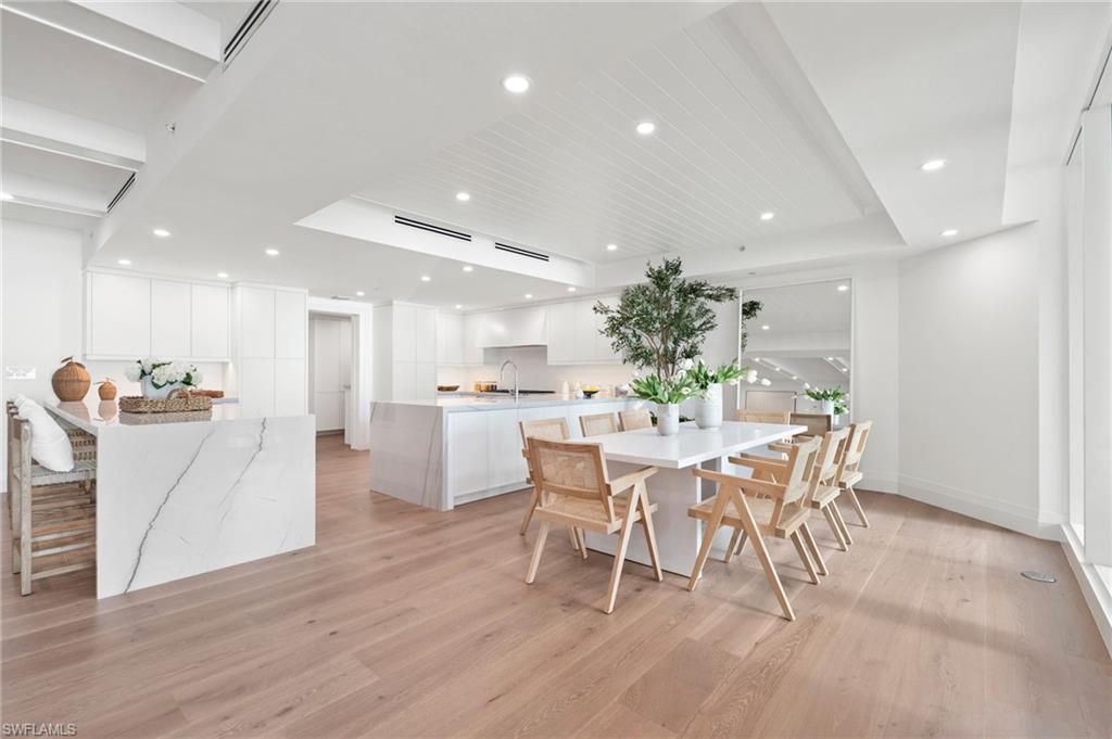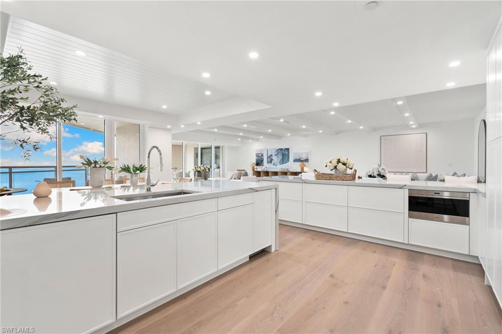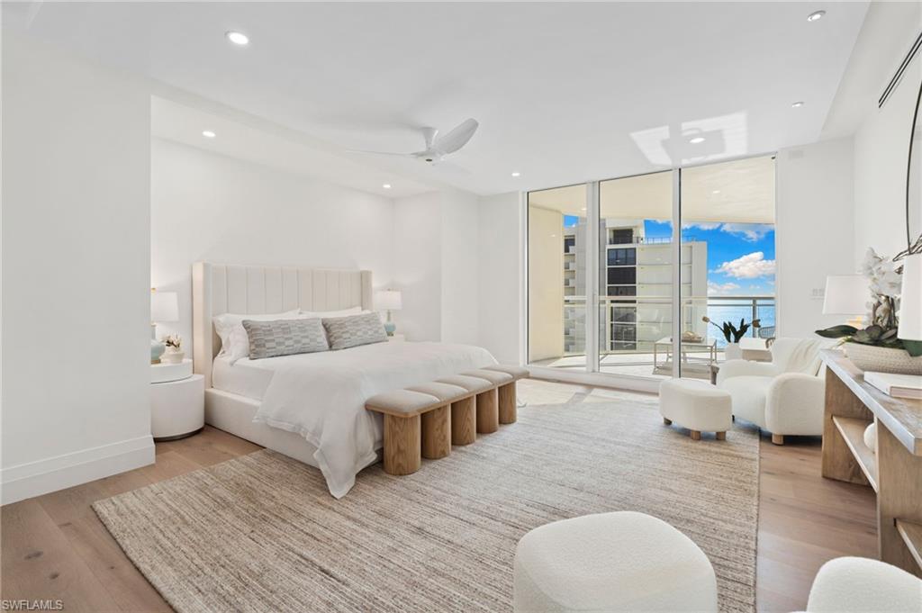 Impressively presented and professionally decorated in an organic modern style, this extraordinary penthouse at Moraya Bay offers refined coastal living at one of Naples’ most prestigious beachfront addresses on Vanderbilt Beach. Spanning approximately 4,548 square feet, the residence features 9-foot ceilings, a grand salon, formal dining room, and a spacious family room, all oriented to capture commanding Gulf views through expansive walls of floor-to-ceiling glass. The thoughtfully curated interiors blend clean architectural lines with natural textures and soft neutral tones, creating a warm, sophisticated, and timeless organic modern aesthetic. Wraparound balconies and expansive terraces extend the living spaces outdoors, allowing for seamless indoor-outdoor living and multiple settings to relax, entertain, and enjoy breathtaking sunsets over the Gulf. The primary suite boasts Gulf views and a spa-like ambiance, while additional guest suites are generously sized and well-appointed for comfort and privacy. A private, air-conditioned two-car garage—a rare and highly desirable feature in high-rise living—adds to the residence’s exclusivity and convenience. Located directly on Vanderbilt Beach, Moraya Bay is a pet-friendly, five-star community offering exceptional amenities, including a gourmet beachfront restaurant and bar, two resort-style pools, concierge services, chair and towel service, a state-of-the-art fitness center, and 24-hour security. Residents also enjoy a gated entrance, 24-hour doorman, and private elevator access, ensuring a secure and discreet living environment. This remarkable penthouse delivers a rare combination of scale, presentation, lifestyle, and beachfront prestige—offering immediate enjoyment in a beautifully styled organic modern coastal residence.