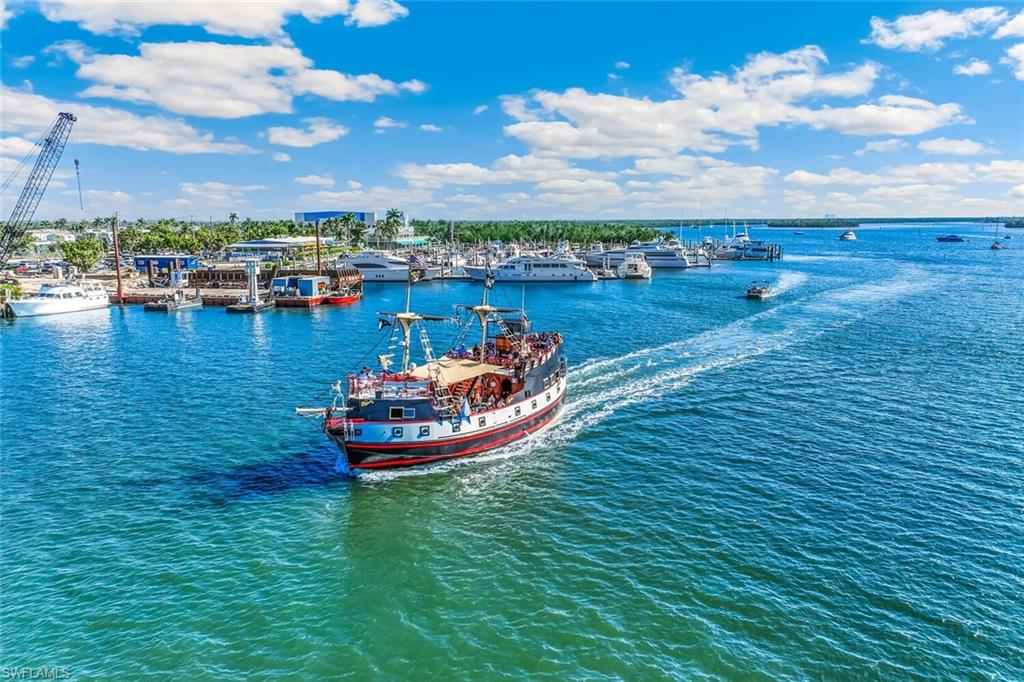 FORT MYERS BEACH IS IN IT'S ASCENSION! This perfectly located Condo is just a little more than a 1/4 mile away from the GULF! Depending on your pace 5-8 minute walk! Views of the MATZANTAS BAY/PASS, BOATS, PARTIAL VIEW OF THE GULF FROM BALCONY, WOODED EASTERN SUNRISE VIEWS AND SUNSET EVERY NIGHT! Watch the KEY WEST FERRY from the new Dock and Pier. Beaches, restaurants, Grocery, Shopping and Fun all within driving minutes! Updated Kitchen and Baths. Newer HVAC and Water Heater. Electric Hurricane Shutters, Screened Balcony and Non-Screened Balcony. Clean and Efficient Elevator. THE best Garage Location in SEA GRAPE! Privacy you have to experience. Quiet when you want. Want to entertain? Pool is what you would draw up for Privacy and cleanliness .Billiards and Community House overlooking Pool. Private Dock and Pier at your fingertips. Firepit. Everything is here to enjoy SWFL BEACH LIVING! THIS IS YOUR FT. MYERS BEACH CONDO!