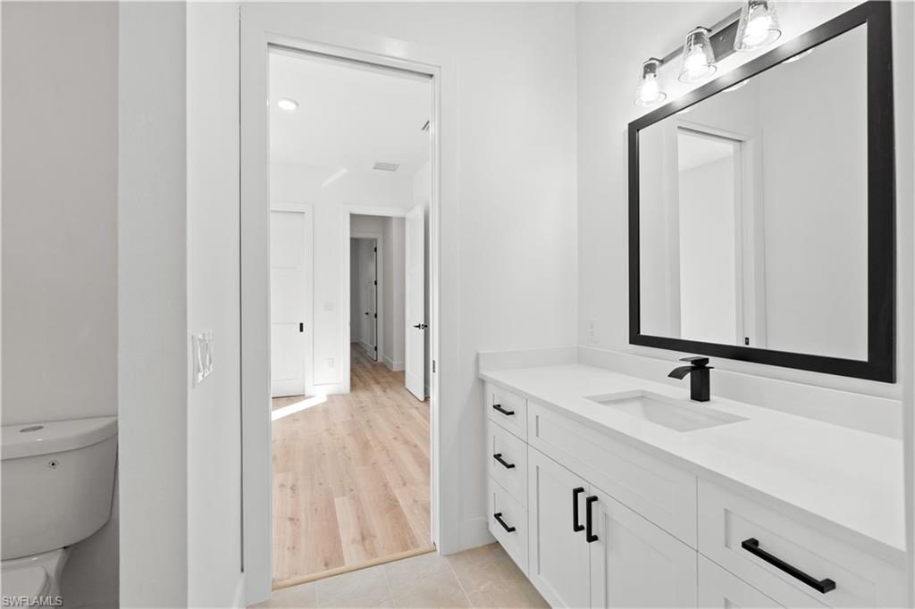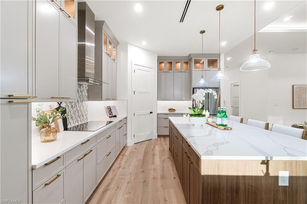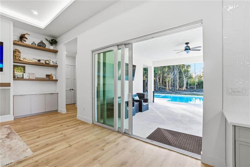 2025-CUSTOM-BUILT POOL HOME WITH 5 BEDROOMS & THE MOST STUNNING FINISHES, NESTLED ON A BEAUTIFULLY WOODED & PRIVATE 1.24 ACRE LOT IN BONITA SPRINGS’ COVETED “SAN CARLOS ESTATES!” This contemporary estate offers a stunning wooded nature view & prime Western exposure for spectacular sunsets & optimal sun on the brand new custom saltwater pool & spa with two sun shelves & bubbler features, situated on a nearly 1,700 sq ft pool deck with additional covered porch & outdoor kitchen adjacent. With an open & lofty floor plan of 2,845 sq ft under air & 4,333 sq ft under roof, this contemporary home boasts a spacious outdoor kitchen, soaring ceilings, Chef’s kitchen straight from a designer magazine, hurricane impact windows/sliders, metal roof, surround sound system, custom fireplace mantel, all solid surface flooring throughout & an oversized extra deep garage. The high-end kitchen boasts quartz counters & custom backsplash, custom dual-tone cabinetry in a modern taupe & rich brown woodgrain color palette, smart Café appliance suite including touch screen oven & double drawer dishwasher, walk-in pantry & adjacent bar with wine fridge. Fabulous entertainment deck offers a generous outdoor kitchen with granite counters, built-in gas grill & wine fridge. The master suite offers spacious dual walk-in closets & stunning bath with modern freestanding tub & oversized walk-in shower with frameless enclosure. The exterior is masterfully crafted with Bahama shutters, modern vertical stucco banding & shiplap accents & Southern-style front porch with modern cable railing. Residents of San Carlos Estates enjoy unparalleled space, privacy & nature with the best dining/shopping amenities just down the street. No HOA fees or rental restrictions! Peaceful living in a central location with easy access to US-41, Imperial Pkwy & I-75. 2 mins to the Promenade shopping/dining, less than 5 mins to Coconut Point, 15 mins to world-class beaches & 20 mins to RSW International Airport.