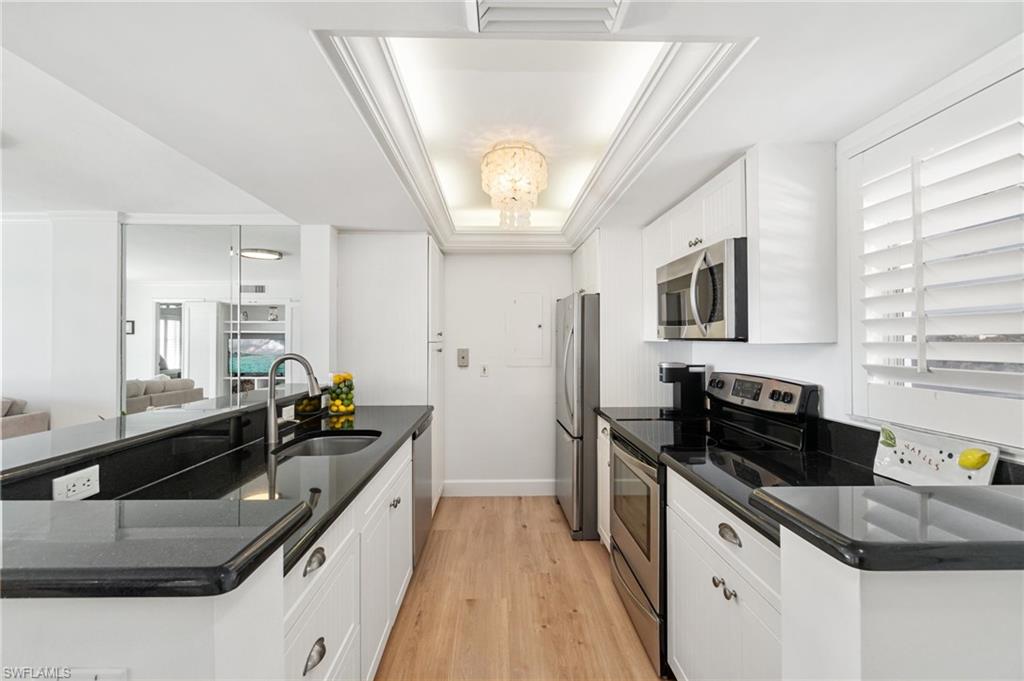 RENOVATED 4th-floor BAYFRONT CONDO with spectacular SOUTH-FACING WATER VIEWS, for BREATHTAKING SUNRISES and SUNSETS! Perfect location a SHORT 8-MINUTE WALK to the PARK SHORE PRIVATE BEACH PARK and a 3-MINUTE WALK to the SHOPS/DINING AT VENETIAN VILLAGE! GULF-ACCESS BOAT SLIPS may be available for lease right in your backyard (subject to availability and negotiation with current lessee)! Nestled in a desirable, PET-FRIENDLY (25 lb limit) building, this beautifully renovated condo features modernized kitchen & bathrooms, NEW white oak look luxury vinyl plank floors throughout, plantation shutters & both electric hurricane shutters & screens, so you can enjoy your spectacular bay view either open air or screened in! The PRIME LOCATION offers an easy stroll to The Village Shops on Venetian Bay with top dining, shopping, and entertainment while being just 3 miles from DOWNTOWN NAPLES. Enjoy PRIVATE BEACH PARK access (1/2 mile away - optional annual membership fee), perfect for a leisurely walk to the sand and surf. The BAYFRONT POOL with Bar and Grill Area, Kayak Storage (12 on a Space Available Basis), Covered Parking, Storage Locker, and Boat Slips (available for lease, subject to availability) add to the exceptional lifestyle this residence offers. The unit also features a full-size washer & dryer. PELICAN POINT is an intimate, well-maintained, 36-unit building with an on-site manager. Don’t miss this rare opportunity to own a piece of paradise!