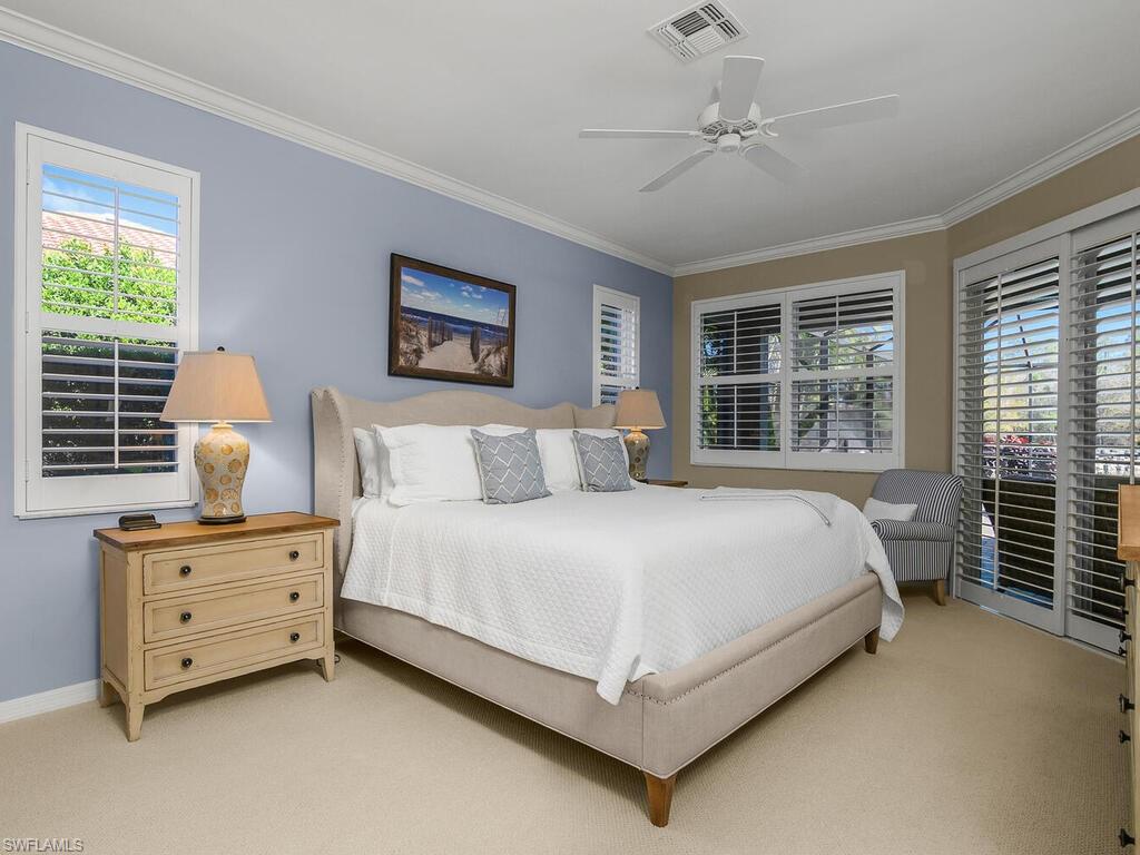Rarely available single-family home in the highly sought-after Naples Heritage Golf & Country Club. This beautifully updated residence offers one of the best views in the community, overlooking both the lake and the golf course, and is surrounded by lush, tropical landscaping that enhances privacy and curb appeal. The home features 3 bedrooms, 2 bathrooms, and a spacious family room, along with a private pool and spa that have been completely renovated, including the pool deck. The fully renovated kitchen boasts new appliances, and the updated bathrooms complement the home’s modern feel. Luxury vinyl plank flooring runs throughout, enhanced by crown molding in every room. Additional upgrades include plantation shutters on all windows, impact glass on the two front windows, storm shutters on all windows and doors, and a whole-house surge protector for added peace of mind. Located just 15 minutes from downtown Naples and 20 minutes from Marco Island, this home includes a full golf membership to Naples Heritage’s 18-hole Gordon Lewis–designed golf course. Community amenities also feature pickleball and tennis courts, a fully attended fitness center, on-site restaurants, and a resort-style pool. This exceptional home combines luxury, lifestyle, and location—an outstanding opportunity in Naples Heritage.