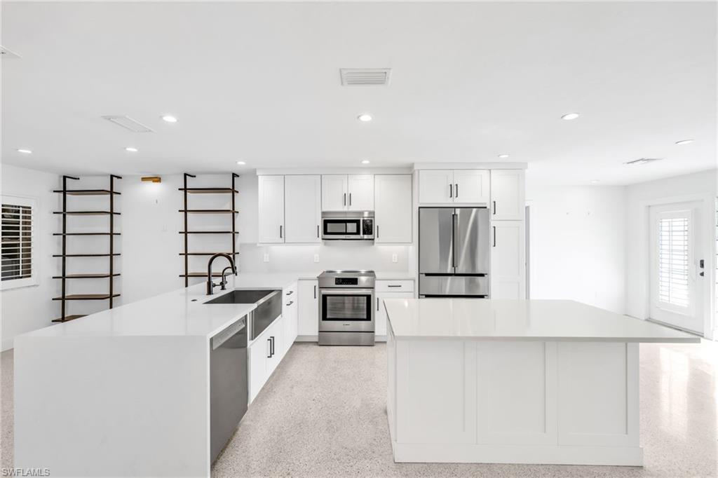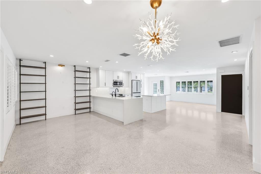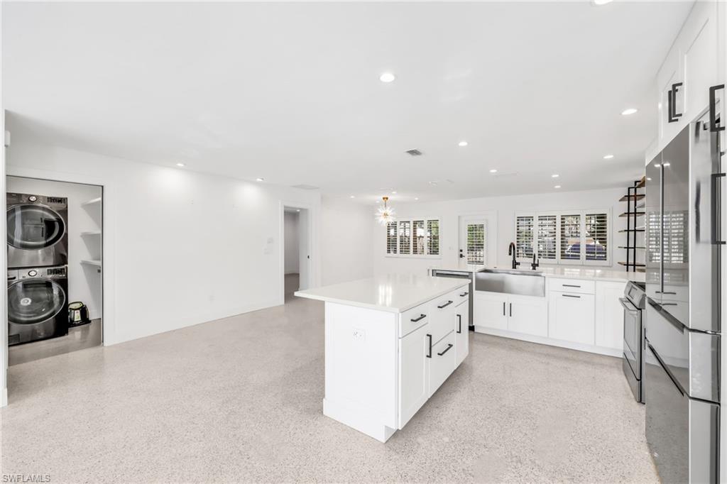 Direct Gulf-access boater's paradise in Gulf Shores & Bayshore's Arts District! This exceptional waterfront residence offers the perfect blend of modern coastal design, income flexibility, and unparalleled boating access just minutes from Downtown Naples. Completely renovated from top to bottom, this thoughtfully updated three-bedroom, two-bathroom home offers 1,902 square feet of living area, complemented by a 295-square-foot oversized one-car garage, with every detail curated to deliver relaxed sophistication and seamless indoor-outdoor Florida living. The true highlight is the home’s rare direct, no-bridge access to the Gulf of Mexico, featuring a 30-foot composite dock added in 2020 with a 10,000-pound boat lift, allowing effortless access to open water directly from your backyard where mornings can be spent watching dolphins glide by and evenings enjoyed cruising at sunset. Inside, hurricane-impact doors and windows frame a bright, open-concept floor plan filled with natural light, while the beautifully designed kitchen serves as the centerpiece of the home with custom solid-wood Kemper cabinetry, an expansive custom island, quartz countertops, and premium Bosch appliances, ideal for both everyday living and entertaining. A neutral coastal palette, clean architectural lines, and refined finishes create an atmosphere that is both elegant and inviting. Outdoor living is equally impressive with expansive entertaining areas and a fully aluminum-fenced backyard offering privacy and security, ideal for guests, pets, or short-term rental use. Unlike many Naples communities, this property features no HOA fees and no rental restrictions, providing exceptional flexibility whether used as a primary residence, seasonal retreat, or high-performing short term rental investment. Living in the Bayshore Arts District means enjoying one of Naples’ most vibrant and rapidly evolving neighborhoods, celebrated for its waterfront character, creative energy, art galleries, boutique shops, community events, and popular local dining including the iconic The Real Macaw, all just minutes from Fifth Avenue South, world-class shopping, and Naples’ renowned sugar-white Gulf beaches.