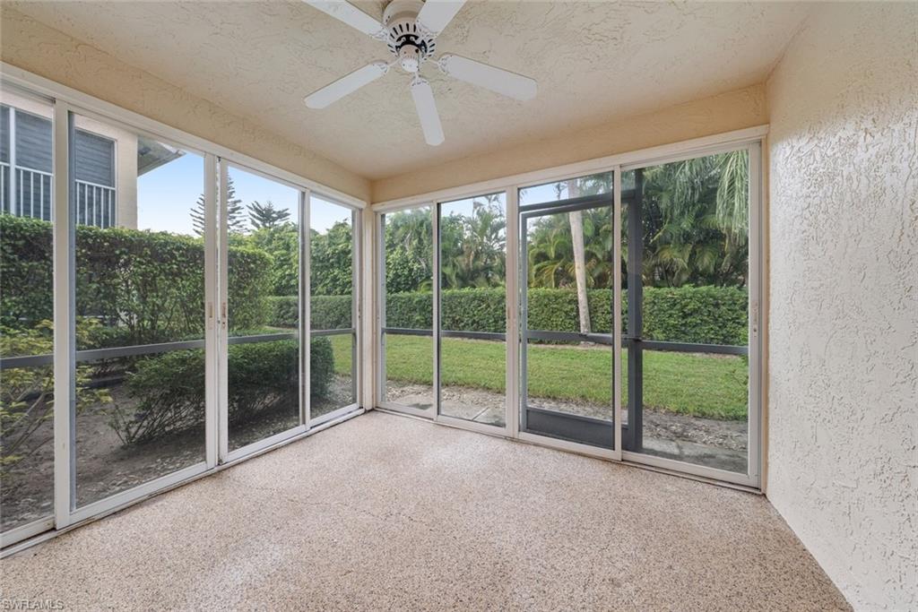 Welcome to this well maintained first-floor condo in the highly desirable Emerald Lakes community of North Naples, where comfort, convenience, and value come together. This light-filled 2-bedroom, 2-bath residence features a spacious floor plan and a split-bedroom layout, offering privacy and flexibility for both owners and guests. The kitchen offers a functional layout that enhances natural light and everyday ease. The primary suite provides a comfortable retreat with an ensuite bathroom featuring dual vanities and a walk-in closet, while the guest bedroom and second bath offer versatility for visitors, a home office, or hobby space. Enjoy the glass and screened lanai, which provides a peaceful indoor-outdoor living space to relax and unwind. Hurricane shutters on all windows and the lanai offer added peace of mind. New carpet and fresh paint throughout. Emerald Lakes is an exceptionally well-maintained community known for having some of the lowest condo fees in Naples and strong financial management. The community was recently gated, providing increased security and peace of mind for residents. Amenities are extensive and include two heated pools, tennis and pickleball courts, bocce ball, fitness center, clubhouse, fishing pier, BBQ area, and scenic walking paths. The Board has voted not to increase HOA fees, and funding is in place for capital expenditures. Ideally located just minutes from Vanderbilt Beach, Mercato, Seed to Table, shopping, dining, and top-rated schools, this condo offers one of the best values in North Naples for its price point and is well-suited as a full-time residence, seasonal retreat, or investment opportunity.