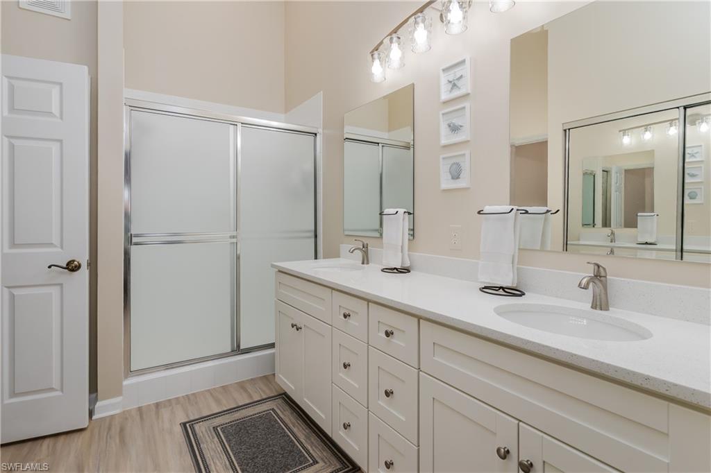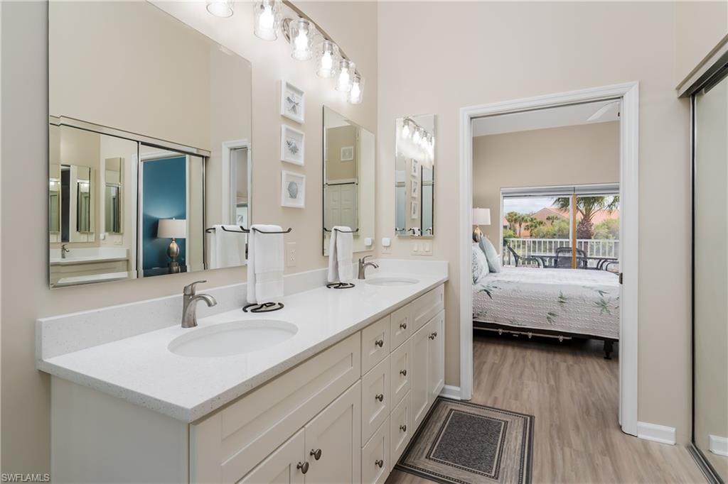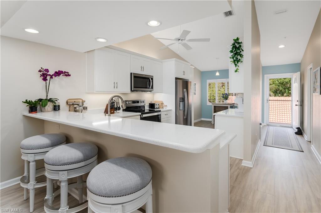 THIS BEAUTIFULLY UPDATED CONDO IN THE FALLING WATERS BEACH RESORT WILL GIVE YOU THE ESCAPE TO PARADISE FEELING FROM THE MOMENT YOU ARRIVE...LIGHT & BRIGHT WITH CATHEDRAL CEILINGS, BEAUTIFUL FLOORING ( LVP ) & NEWLY PAINTED. THE KITCHEN IS AMAZING, UPDATED CABINETS & STAINLESS APPLIANCES. BOTH BATHROOMS HAVE NICE NEW TOUCHES, VANITIES & CONTEMPORY COUNTER TOPS. RECENTLY UPDATED LANAI INCLUDING CABINETRY, PLEXI ENCLOSURES & CUSTOM MOTORIZED BLACKOUT BLINDS!!PORCELAIN TILE PLUS 300 SQ FT OF ADDITIONAL LIVING NOT TO MENTION, WHAT A VIEW!!..THIS WILL ABSOLUTELY BECOME YOUR FAVORITE ROOM IN THE HOUSE! ! A/C, HOT WATER HEATER & ROOFS REPLACED JUST A FEW YEARS AGO.. FALLING WATERS IS HOME OF THE FAMOUS LAZY RIVER POOL...3 FT DEEP WITH A CURRENT, FLOAT AROUND ONCE & YOU WILL MEET SO MANY PEOPLE..A SECOND LAP POOL IS ALSO ON THE PROPERTY...LOTS OF BOCCE PLAYERS, PICKLEBALL PLAYERS & FLORIDA LIFESTYLE LOVERS!! LOCATED EQUAL DISTANCE TO BOTH MARCO ISLAND & DOWNTOWN NAPLES FOR DELICIOUS DINING, AMAZING SHOPPING & ENDLESS WHITE SAND BEACHES...THE PERFECT GETAWAY HERE IN PARADISE!!...WI-FI IS NOW INCLUDED IN THE CONDO FEES!! YEA!!