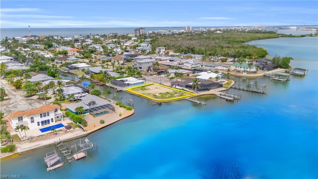 BOATERS BAYFRONT PARADISE. This PANORAMIC BAYFRONT location on the Intercoastal Waterway offers .23 ACRES / 10,106 sq ft of unparalleled opportunities for waterfront living. Boasting DUAL dock placements on the WRAPAROUND CANAL & BAYFRONT, making it the ideal canvas for your DREAM NEW CONSTRUCTION HOME. Just a 5 minute Boat ride to the PIER District and Dozen Restaurants, Bars, Marinas and more. Indulge in the ultimate coastal lifestyle with this extraordinary GULF ACCESS parcel. MULTIPLE BUILDER INTRODUCTIONS AVAILABLE. Spanning an impressive footprint, this expansive lot provides ample space to create a custom-designed masterpiece that perfectly encapsulates your vision of luxury living. Imagine waking up to breathtaking sunrise views over the tranquil waters of the bay, with endless possibilities for outdoor recreation and relaxation right at your fingertips. Spend your days cruising along the bay, fishing in renowned fishing spots, or embarking on exciting maritime adventures – the choice is yours. In addition to its unrivaled waterfront location, this property boasts unbeatable convenience, with a short walk to the sugary sands of Fort Myers Beach, where you can enjoy endless days of sun, sand, and surf. Nearby restaurants, marinas, and recreational amenities add to the allure, providing a myriad of dining, shopping, and entertainment options just moments away. Whether you envision a lavish waterfront retreat, a stunning vacation home, or a lucrative investment opportunity, this oversized bayfront and canal front lot offers the perfect setting to bring your dreams to life.