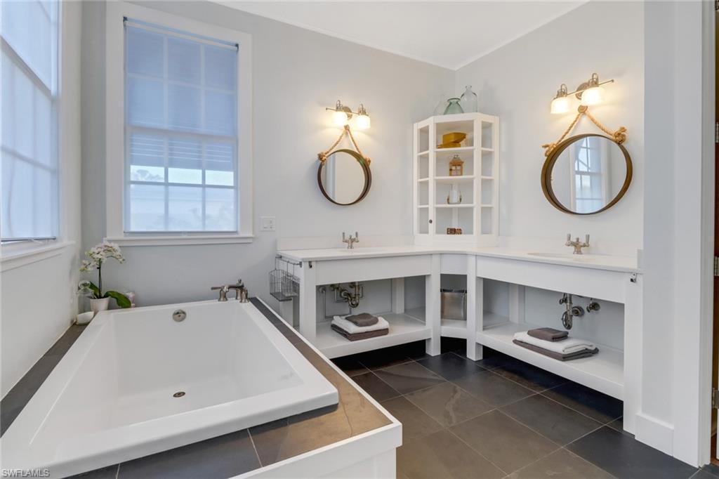 This impeccable, thoughtfully designed, home offers a rare opportunity to move into one of Naples' most prestigious neighborhoods at a high-value price point. MOVE IN READY, and close to the BEST SCHOOLS IN NAPLES, this spacious gem is on 1.22 acres, designed by David Corban Design, and custom built by Lundstrom Development. Featured in Gulfshore Life, this home features two primary bedrooms including one on the main floor. Other well-designed features include all ensuite bedrooms, spacious wraparound front porch with discreet ramp access, movie room with double wall construction, deep saltwater pool, saltwater spa, expansive covered outdoor deck, outdoor kitchen, cabana bath, mud room, large parking pad for boat and other recreational vehicles, storage everywhere, impact windows, completely fenced yard, electric vehicle charging, and so much more! Set in a private and peaceful oasis accentuated by native plant landscaping to enhance natural beauty while reducing maintenance. Fruit trees provide tropical appeal. The spacious, finished third floor offers endless potential for a playroom, hobby room, exercise room, game room. Ideal location is close to sugar sand beaches, the sparkling allure of fabulous 5th Avenue, the enduring charm of Venetian Village, and the ubiquitous appeal of Mercato center. All this with a history of remaining safe from storms. You are going to love it here! FEMA CLASSIFIED AS MOST DESIRABLE FLOOD ZONE X!