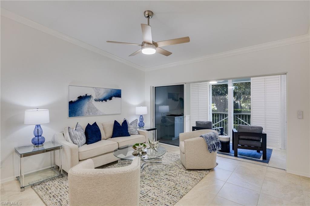 Perfectly positioned in Pelican Bay, this refreshed second-floor home delivers privacy, soaring ceilings, and sun-filled spaces, plus added safety and sound control through new impact glass. Located on the north end of Pelican Bay, this residence has just undergone a thoughtful refresh. The walls and trim were carefully repaired and patched, closets were emptied of shelving, and freshly painted. All door hardware, bathroom mirrors, switch plates, light fixtures, and ceiling fans were replaced and updated – giving the home a crisp, like-new feel. The open den off the main living area could be enclosed to create a third bedroom, while the existing layout already provides two spacious bedrooms. With roughly 1,620?sq?ft under air (nearly 2,100?sq?ft including both lanais), the soaring ceilings make the home feel larger than its footprint. Mechanical systems are up-to-date: the HVAC was replaced in 2019, the water heater in 2024, roofs (including garages) were replaced in 2017, and the sellers installed impact-resistant windows in 2022 for peace of mind and added insulation. At the ground level entrance, you’ll find a large storage closet under the stairwell with bright lighting and durable new LVP flooring. The west-facing rear lanai provides a peaceful setting to watch sunsets over a lush landscape, while a front “morning room” just off the dining area captures gentle morning light. It’s only about 67 steps to the community pool and clubhouse, where you’ll enjoy a heated pool, spa, Wi-Fi-enabled lounge area, Weber grill, and a gathering room with a small kitchen—all perfect for relaxing or entertaining. Everyday conveniences are close at hand—the Pelican Bay Marketplace (home to a Publix grocery store, Ace Hardware, CVS, and casual dining) is within walking distance. At the same time, nearby Mercato, Pavilion, Waterside Shops, Trader?Joe’s, and countless restaurants provide upscale shopping, dining, and entertainment options. Barrington Club residents also enjoy privileged access to Pelican Bay’s world-class amenities. These include a private beach club with restaurants, bars, and beach attendants; a fitness and wellness center; two tennis centers; and parks connected by a convenient tram system. Whether you move in and enjoy all the work being completed with its impeccable updates or choose to renovate the kitchen and baths to your taste, 7087? Barrington Circle #202 delivers immediate move-in status, enhanced security with impact windows, and value in arguably Naples’ most sought-after community.