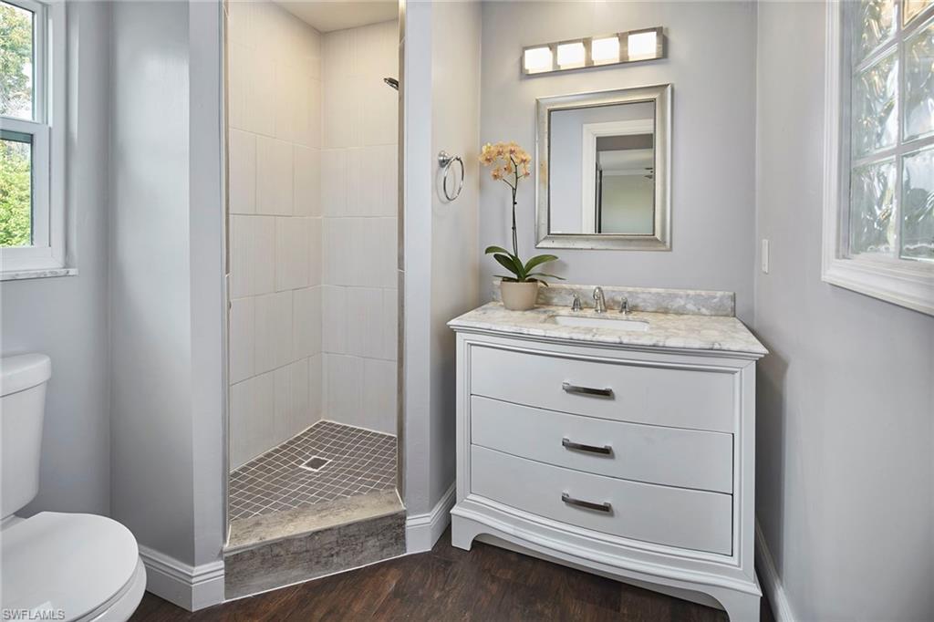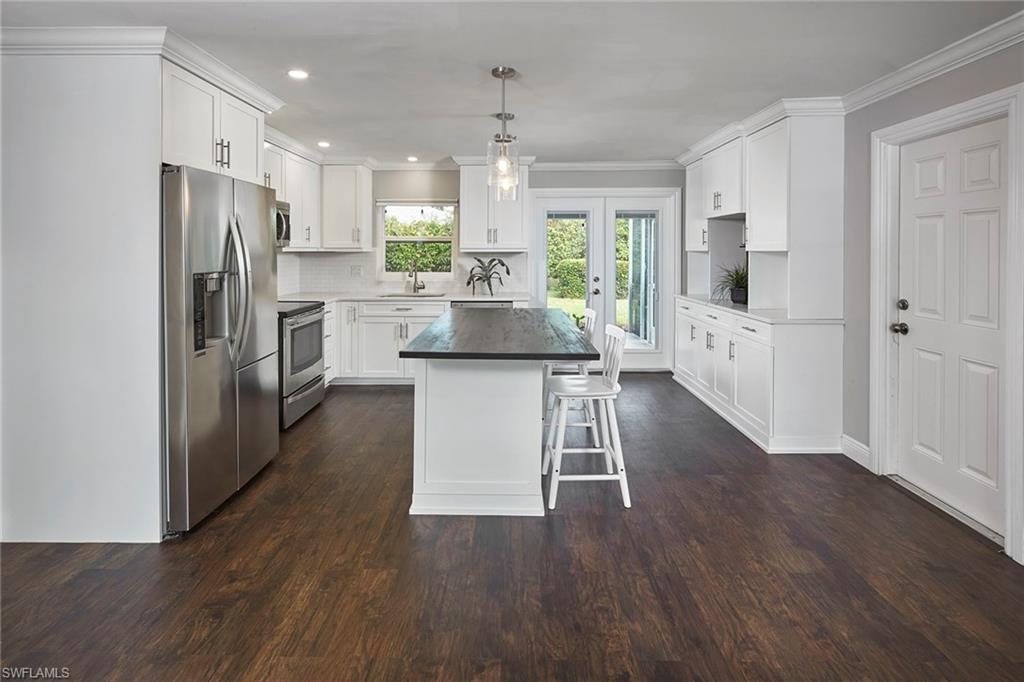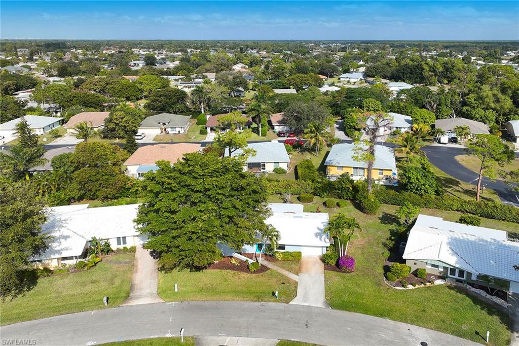This extremely updated property exudes charm throughout and is conveniently in Lely Villas near all the bustling activities Naples has to offer. Condominium ownership but lives like a detached single-family home with two bedrooms and two baths on a private lot featuring a newer tile roof (2023) and impact-resistant windows and doors (2021) attached one-car garage and large covered screen lanai. Open eat-in kitchen has a wood-top island, white cabinetry, quartz countertops, stainless appliances, a stunning built-in coffee bar and a matching built-in entertainment center both with additional storage. Large primary bedroom has lanai access, a walk-in closet and updated bath. The second bath has also been tastefully renovated. The interior features wood-look plank vinyl flooring, crown molding, French doors, six-panel interior doors, newer lighting and fresh paint in neutral tones. The spacious entry closet has been converted to a private nook with desk and storage space, which can quickly and conveniently be hidden. The huge 26-by-12-foot screened-in lanai is an ideal area for relaxing, dining or entertaining. The reasonable condominium fees include cable, internet, irrigation and lawn maintenance. At this price, this hard-to-find modernized house will move quickly.
