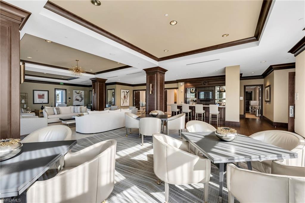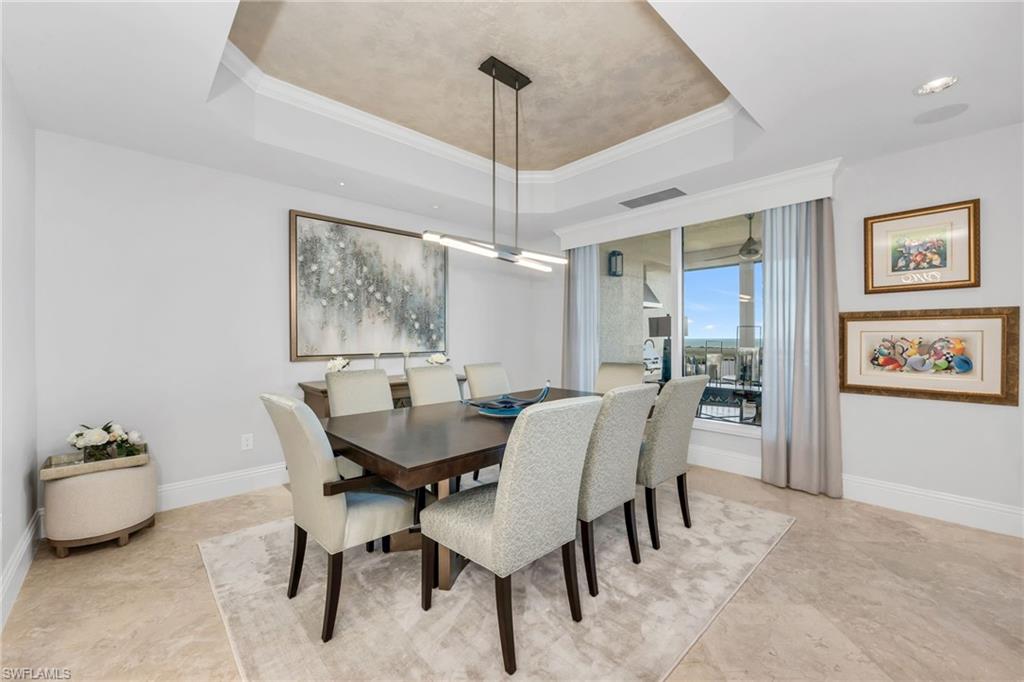 Stunning sunsets over the bay and the Gulf of Mexico set the stage for this impeccably designed high-floor residence, offering sweeping panoramic views all the way to Sanibel Island. Located on the 22nd floor of the sophisticated Tavira high-rise in Bonita Bay, this beautifully updated three-bedroom, three-bath home has been professionally decorated by a high-end designer and meticulously maintained. With more than 4,400 total square feet, including a large screened lanai and open balcony, this luxury condominium lives like a single-family home. Expansive living spaces are ideal for both everyday comfort and elegant entertaining, all framed by breathtaking water views. Exit the elevator to enter the residence through your own private entry foyer. The residence also includes a large enclosed two-car garage with ample space for extra storage. At the heart of the home, the gourmet island kitchen enjoys both sunrise and sunset vistas and features Wolf and Sub-Zero appliances, abundant counter space, a walk-in pantry, and bar seating. The kitchen opens seamlessly to the living, dining, and family rooms, creating a welcoming open-concept layout. Remarkable fireplace in the living room adds to the ambiance. A custom bar with a full-size wine cooler enhances the living area, while the oversized screened lanai—spanning more than thirty feet—provides a front-row seat to mesmerizing bay and Gulf views. The primary suite is a true retreat, featuring an additional sitting area ideal for a home office or casual TV viewing, two exceptionally large walk-in closets, and a luxurious bath with dual vanities, a soaking tub, and a separate shower. Two guest bedrooms and two additional full baths provide comfort and flexibility for family and visitors. Tavira also offers guest suites available to reserve for overflow guests. Highly regarded Tavira offers an impressive collection of resort-style amenities, including a resort pool and cabana, fitness center, movie theater, golf simulator, social and meeting rooms, and outstanding on-site management. All of this is set within gated Bonita Bay, featuring a private Gulf-front beach, 12 miles of walking and biking trails, a full-service 400-slip marina, and an award-winning golf and lifestyle club with five championship golf courses, 16 tennis courts, 15 pickleball courts, and a 29,000-square-foot fitness center and spa. And don't drive to the beach, Bonita Bay provides a shuttle from your neighborhood to the brand new beach house on the Gulf. This is a beautifully appointed, high-floor executive-style residence in pristine condition.