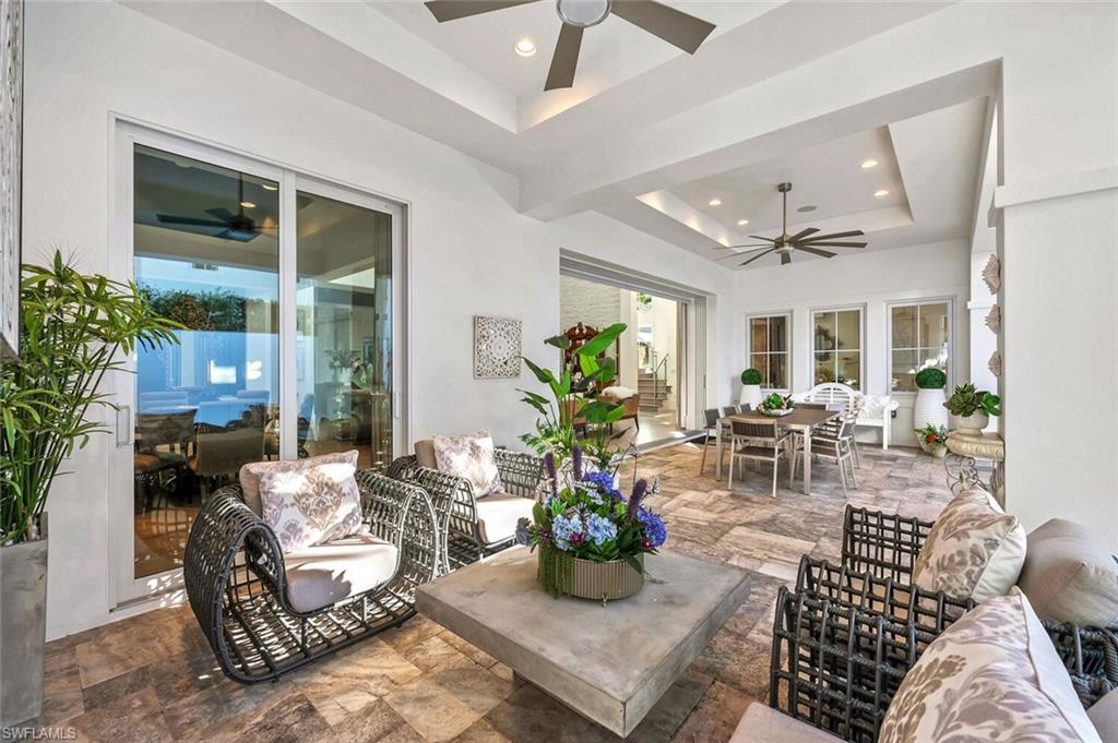 WELCOME TO CASA MAR at The Residences at Mercato. Casa Mar offers a rare and elevated lifestyle just minutes from Naples’ famed white-sand beaches and championship golf. Located within a refined, gated enclave of only 45 residences, this exceptional home enjoys the unparalleled convenience of Mercato’s walkable lifestyle—surrounded by fine dining, numerous boutiques, Whole Foods, entertainment, and world-class arts and culture—while remaining gracefully secluded behind elegant private walls. Inside, soaring ceilings and expansive living spaces create an atmosphere of light, volume, and understated sophistication—designed for inspired living and serene retreat. A hidden GEM! Set on a premium double lot, one of only four homes of this style, this spacious residence features 4 Bedrooms plus Den, 3.5 Baths, and a generous Loft with Office Space. A dramatic two-story Foyer and Grand Salon flow seamlessly into multiple outdoor patio spaces, creating a harmonious blend of indoor and outdoor living ideal for effortless entertaining. Additional highlights include: Saltwater pool, outdoor kitchen next to BBQ, private sauna w/Blaupunkt Music System, four-car, double garage with built in storage, pet-friendly private walking backyard, and Professionally Decorated by published designer with many refined touches from around the world. Uniquely positioned between two Ritz-Carlton resorts—the Beach Resort and the Golf Resort—approximately four miles apart. This distinctive positioning is not offered in any other location in the United States. The newly unveiled Piazza introduces a refined focal point for community life, featuring a substantially expanded footprint, curated landscaping, elegant lighting, lounge-style seating, and a purpose-built stage for cultural programming and live performances. Designed for connection and celebration, the Piazza hosts concerts, outdoor cinema, and seasonal gatherings—enhancing the allure of a sophisticated, walkable lifestyle surrounded by acclaimed dining, boutiques, and entertainment. Turn-Key and Move-In Ready.