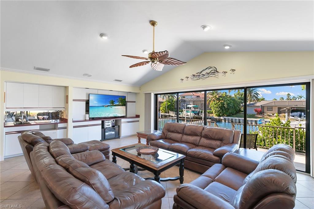 Enjoy a prime waterfront location with the convenience of direct access to the Gulf, and just moments from the Marco River. This property is ideal for those who appreciate easy access to boating and water activities. a boater’s paradise, you will find the custom dock and rare cut-in boat slip especially appealing, featuring a 12,000-pound lift designed to accommodate vessels between 25 and 27 feet. These amenities provide practicality and pleasure for boat owners. This spacious home offers generous living space with four bedrooms and three and a half baths and comes fully furnished for immediate comfort and convenience. Interior highlights include distinct living and dining areas, a large family room ideal for gatherings, and an updated guest bath. The expansive screened lanai, positioned for desirable southwest exposure, features a summer kitchen, outdoor shower, half-bath and a large pool. A separate sun deck provides beautiful canal water views, creating an inviting atmosphere for relaxation and entertainment. Interior finishes are elevated by the home’s high vaulted ceilings, custom cabinetry, wet bar, and durable vinyl and tile flooring throughout. These finishes contribute to the style and functionality of space. Unique under-home storage with cement flooring offers practical solutions for organization. The property also includes a paved driveway, a new tile roof installed in 2018, newer air-conditioning unit in 2019, new pool heater, and manual and electric storm shutters for added protection. This home not only provides comfort but also represents excellent potential investment opportunity, supported by a strong rental history.