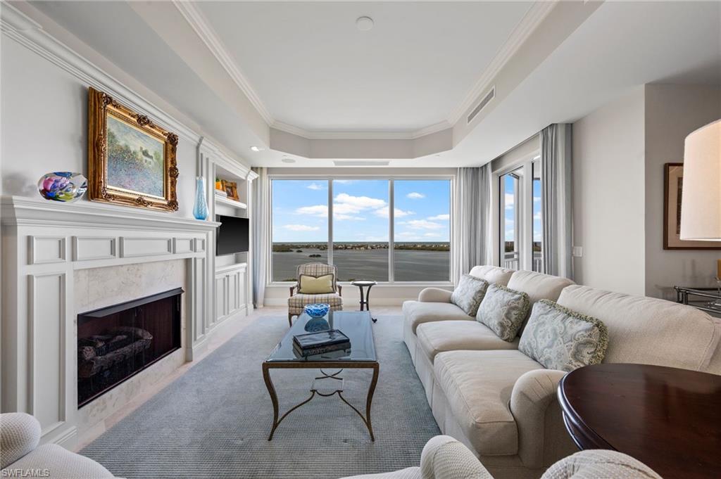 Experience refined high rise living in this beautifully appointed 15th floor residence in Tavira, one of Bonita Bay’s most coveted luxury towers. With sweeping, unobstructed views of the Gulf, Estero Bay, and the lush preserve canopy of the golf course below, this sanctuary offers a daily panorama of sunrises, sunsets, and shimmering water. A private elevator opens to an elegant foyer that leads into a spacious, light-filled great room framed by floor to ceiling glass and electric shades. The home features limestone flooring throughout all the main living areas. The open layout flows effortlessly to an expansive screened terrace—perfect for morning coffee or evening cocktails and grilling out. The gourmet kitchen features premium cabinetry, stone countertops, a large island, top tier appliances including a gas cooktop, warming oven, oversized refrigerator, and a large wine vault creating an ideal space for both everyday living and entertaining. The owner’s suite is a serene retreat with terrace access, dual closets and a spa inspired bath with separate vanities, soaking tub, and oversized shower. Two additional guest suites provide comfort and privacy, while a versatile family room offers space for an office, media room, or quiet escape. Residents of Tavira enjoy resort style amenities, including a rooftop terrace with breathtaking views, a resort pool and spa, state of the art fitness center, steam, sauna and massage rooms, theater, billiards, golf simulator room, guest suites, and an elegant club room for gatherings. Bonita Bay’s award winning community enhances the lifestyle with five championship golf courses, a private beach park, full service marina, pickleball, tennis, miles of walking and biking paths, and a vibrant social scene. A rare opportunity to own a high floor residence in Tavira—where luxury, nature, and coastal serenity come together in perfect harmony.