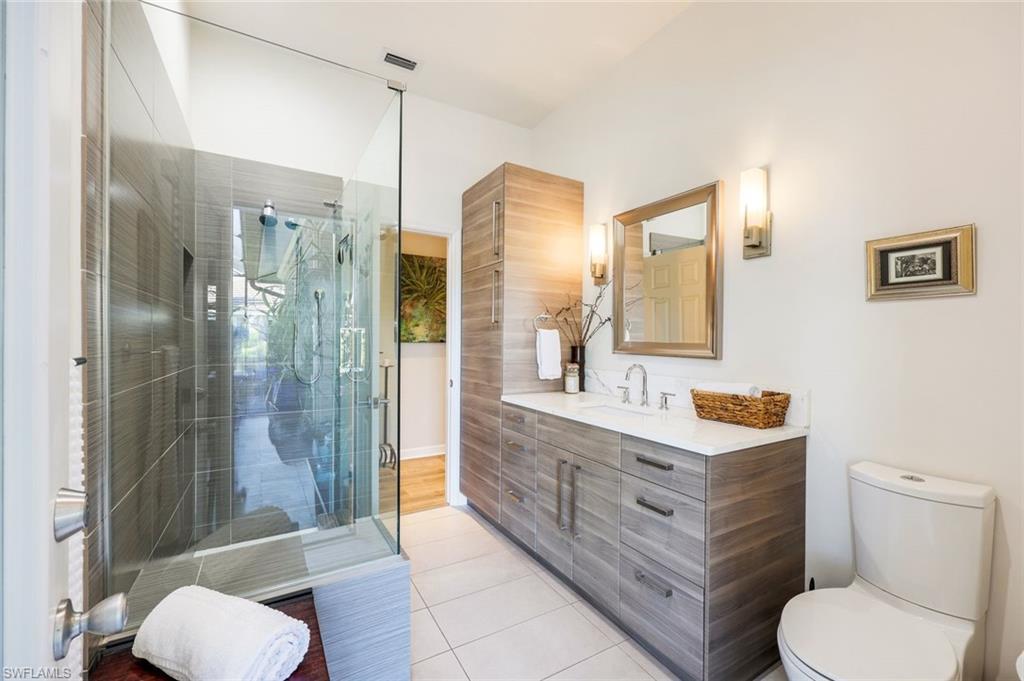 A rare opportunity to own an exceptional residence on one of the most expansive homesites in Longshore Lake. Situated on approximately 0.45 acres, this beautifully maintained property offers 3 bedrooms, 2 bathrooms and 2 versatile dens, perfectly suited for a private home office and an inviting music or relaxation room complete with a fireplace. An ideal combination of refined finishes, thoughtful updates, and serene lakefront living. Significant improvements include a roof replaced in 2020, a water heater updated around 2020, along with hurricane shutters throughout for added security. The outdoor living space is truly impressive, showcasing a large pool and entertainment area overlooking the lake, framed by mature privacy hedges. The pool has been recently re-tiled and re-plastered, features both solar and electric heating, and is supported by new pool equipment installed in 2022. A travertine pool deck and jacuzzi with dual heating complete this resort-style retreat. Inside, the kitchen is designed with classic soft-close cabinetry, light granite countertops, stainless steel appliances, a cooktop with an extraction hood, and a purified water faucet. The bathrooms are equally refined, offering statuary white marble countertops, frameless glass showers, and high-end Hansgrohe fixtures. Flooring throughout the home includes vinyl in the main living areas, bamboo in the bedrooms, and porcelain tile in the bathrooms, reflecting quality craftsmanship at every turn. Residents of Longshore Lake enjoy an active, social lifestyle with access to eight tennis courts, soon (by April 2026) 4 pickleball courts, a fitness center, basketball court, playground, and a welcoming (Soon to be updated) clubhouse featuring a restaurant and bar with picturesque lake views. The community also allows electric boats, kayaks, canoes, and paddleboards, enhancing the waterfront experience. This is a standout opportunity to enjoy lakefront living in one of North Naples’ most desirable communities, offering privacy, amenities, and a beautiful natural setting.
