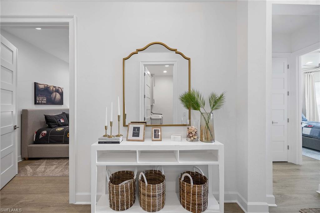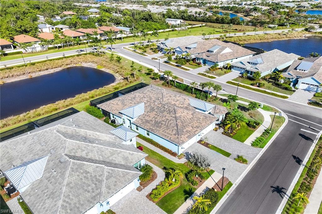 This upgraded Frezia villa offers a wide lake view in The Isles of Collier Preserve. Stunning coastal contemporary home features three bedrooms, two baths plus a den, with soaring ceilings ranging from 10 to 11 feet, accented by elegant crown molding. The home showcases impact-resistant glass, upgraded landscaping with LED lighting and a gourmet kitchen complete with upgraded cabinetry, quartz countertops and under-cabinet lighting. The laundry room includes upper cabinets and matching quartz countertops. Additional highlights include custom window blinds, a spacious primary bath and custom closets in the primary suite. Notable upgrades continue throughout the home with a water softener and reverse-osmosis water filtration system, upgraded lighting, a custom entry feature wall and an air-conditioned garage with epoxy flooring. The saltwater pool and spa are enhanced with auto-fill functionality, while Storm Smart hurricane shutters and a security and camera system provide peace of mind. Surrounded by 2,400 acres of pristine natural preserve, residents enjoy an exceptional lifestyle with resort-style amenities including six tennis courts, 14 pickleball courts, four bocce courts, a lap pool, a resort pool with the Overlook Bar & Grill, seven-plus miles of recreational and biking trails, paddleboarding and kayaking, a dog park, and a state-of-the-art fitness center with locker rooms and saunas. Ideally just minutes from Old Naples 5th Avenue, offering world-class dining, shopping, theater and Naples, and renowned white sand beaches. Hamilton Yacht Club is also conveniently accessible through back gates of the community.