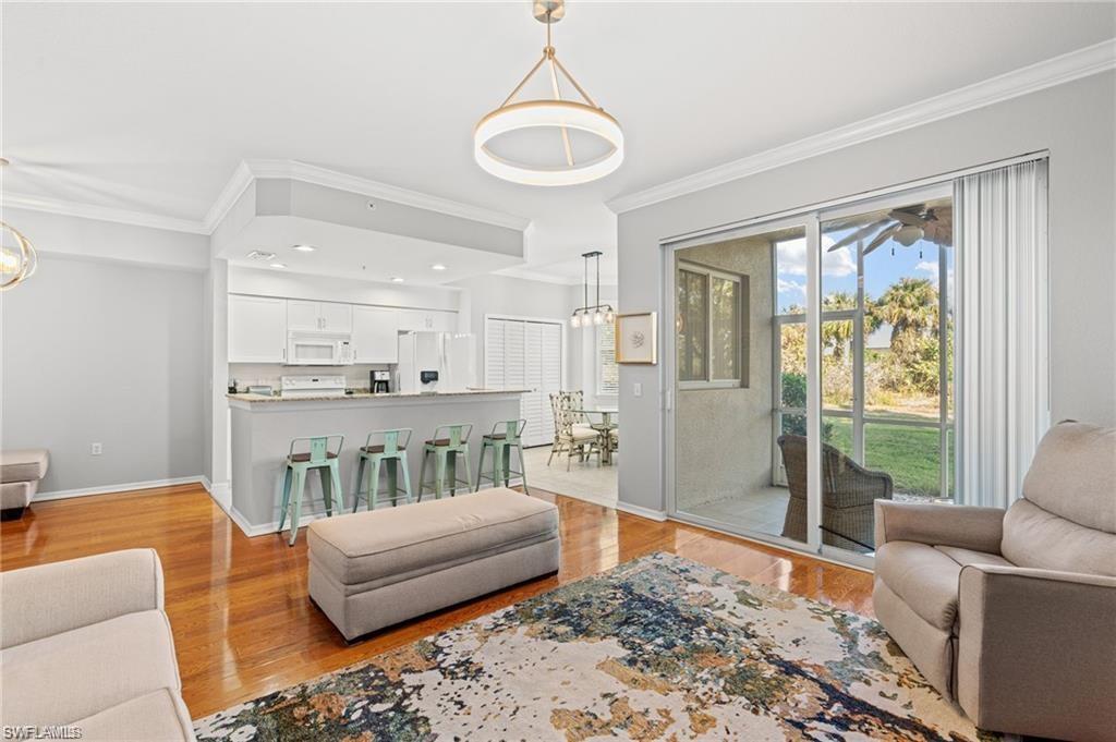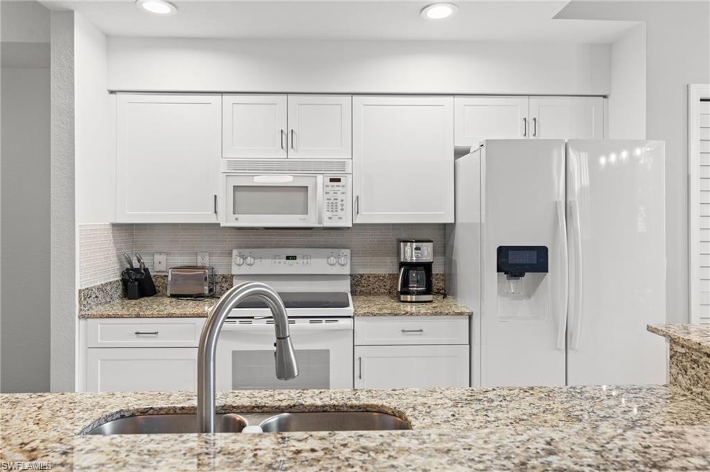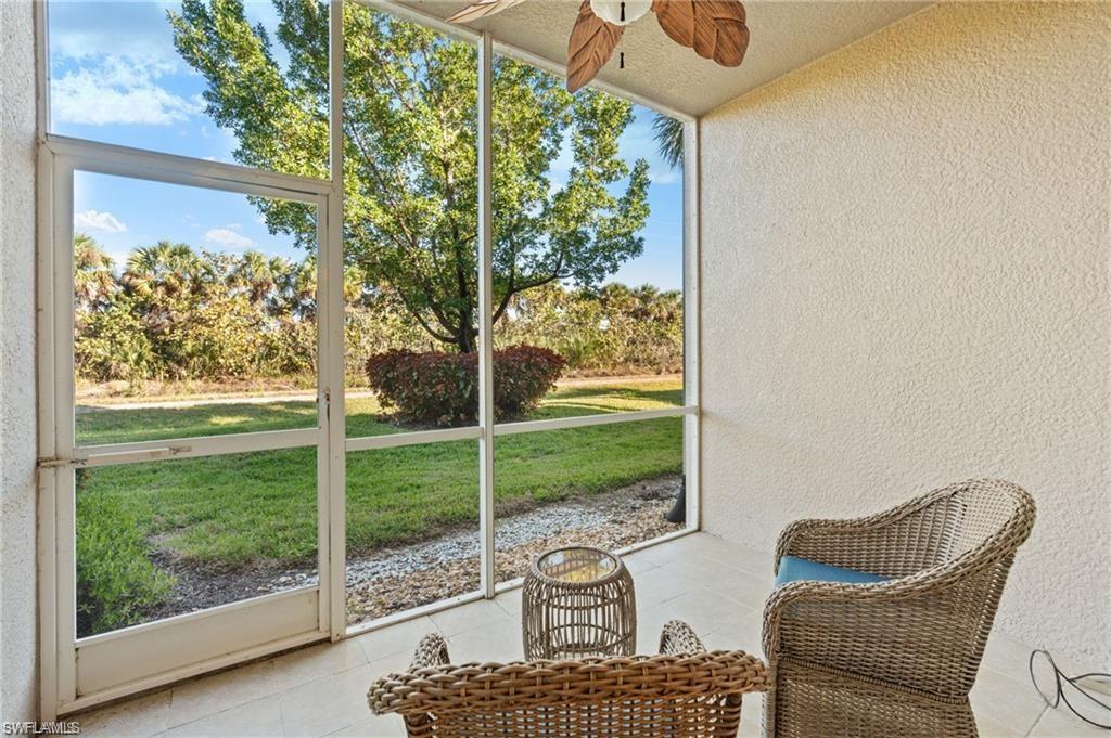 Rare opportunity in Bella Terra’s desirable Barletta enclave. This move in ready first floor 2 bedroom 2 bath condominium offers a bright open concept layout with high ceilings and crown molding throughout, creating an airy and spacious feel that lives larger than expected. The kitchen, dining area, and bathrooms feature tile flooring, while the living areas and bedrooms offer attractive wood look laminate, delivering both warmth and durability. Granite countertops, white modern appliances, and a clean neutral palette enhance the updated interior. Offered furnished for immediate enjoyment, this property is ideal for investors, seasonal residents, or future full time owners. Enjoy tranquil preserve views, impact resistant windows, covered carport parking, and a private additional storage unit conveniently located by the parking space. Bella Terra is a gated resort style community known for its exceptional amenities including a grand clubhouse, resort pool and spa, state of the art fitness center, tennis and pickleball courts, basketball, bocce, walking and biking paths, playgrounds, and a vibrant social calendar. HOA fees include water, cable, trash removal, and exterior maintenance. Property is currently rented through March 31, 2026, offering immediate rental income and a smooth transition for future occupancy. Ideally located minutes from Miromar Outlets, Gulf Coast Town Center, Coconut Point, beautiful Gulf beaches, and RSW International Airport, this property delivers lifestyle, location, and opportunity in one of Estero’s most sought after communities.