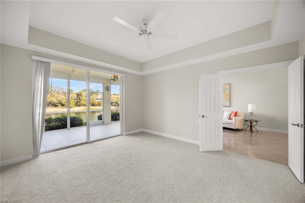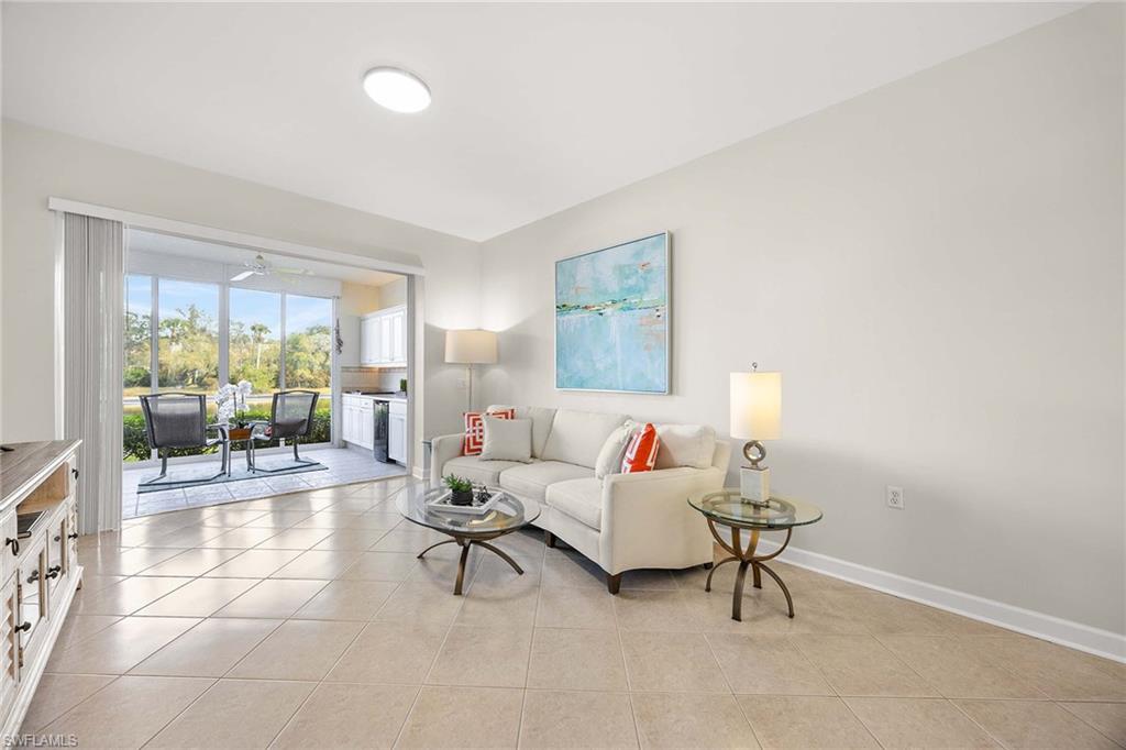 A rare first-floor corner residence with extra corner window- offering a private lake and preserve setting in the highly desirable Falling Waters Beach Resort. Thoughtfully positioned to capture tranquil views and exceptional natural light, this 2-bedroom, 2-bath condominium spans 1,651 square feet and features extra east- and south-facing windows that bathe the home in sunlight throughout the day. Your private garage is located just steps from the front door. The glass-enclosed, air-conditioned lanai expands the living space and creates an inviting environment for year-round enjoyment. Perfect for entertaining, the lanai is outfitted with a built-in outdoor kitchen featuring a Jenn-Air grill, sink, and under-counter beverage refrigerator—an ideal setting for relaxed evenings overlooking the water and preserve. More than $100,000 in recent upgrades elevate the residence, including new A/C, new water heater, a beautifully reimagined kitchen with quartz countertops and backsplash, updated lighting throughout, and brand-new Karastan carpeting in the bedrooms. The corner location enhances privacy while offering a serene, resort-inspired ambiance. Falling Waters Beach Resort is known for its fun, friendly atmosphere and outstanding amenities, including a clubhouse, tennis, pickleball, and bocce courts, along with extensive sidewalks and walking paths that wind through the community. Ideally located in central Naples, residents enjoy a low-maintenance lifestyle with effortless access to world-class beaches, shopping, dining, and the Marco Island corridor. A refined blend of comfort, light, privacy, and resort living—this is Florida living done right.