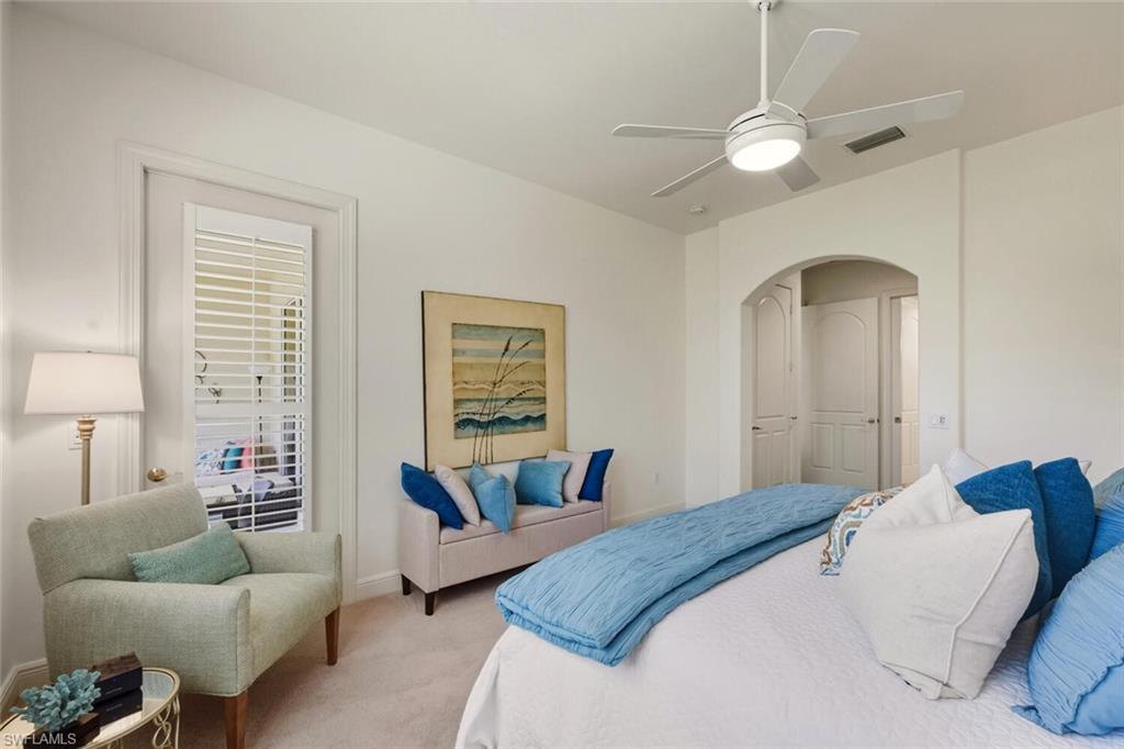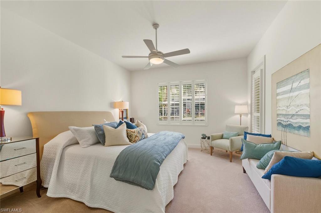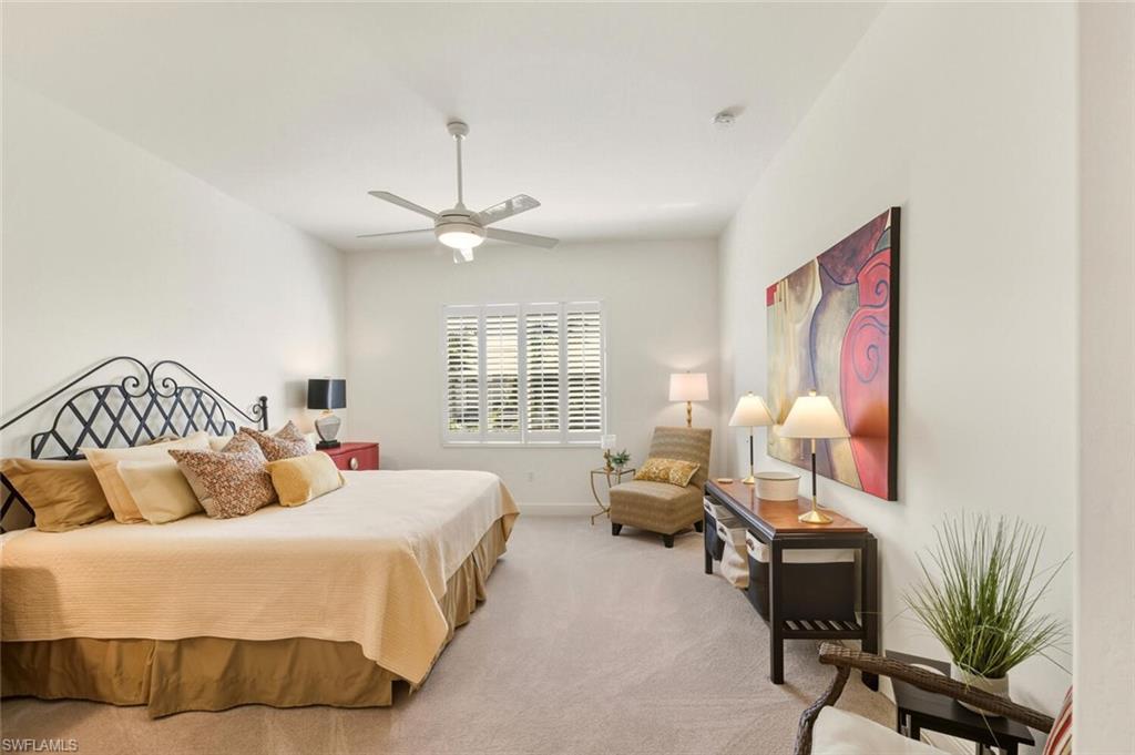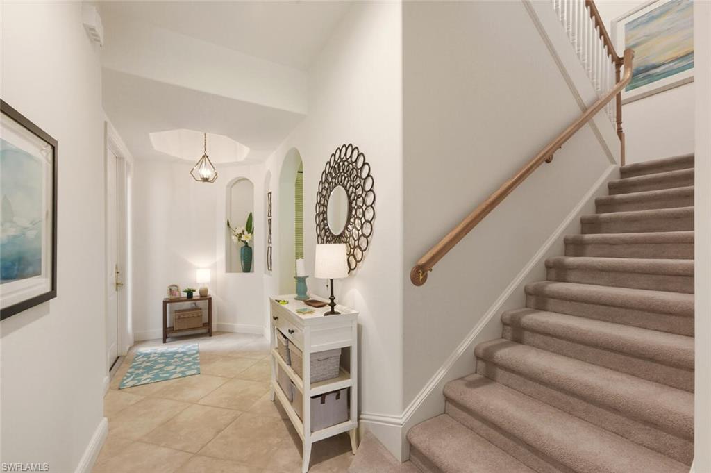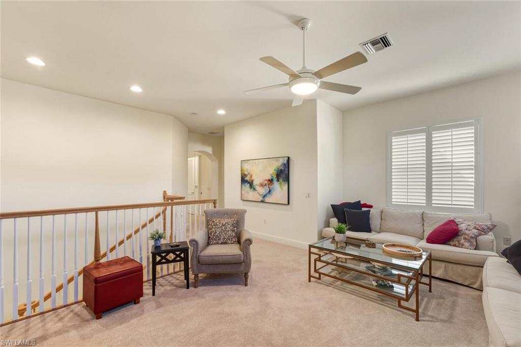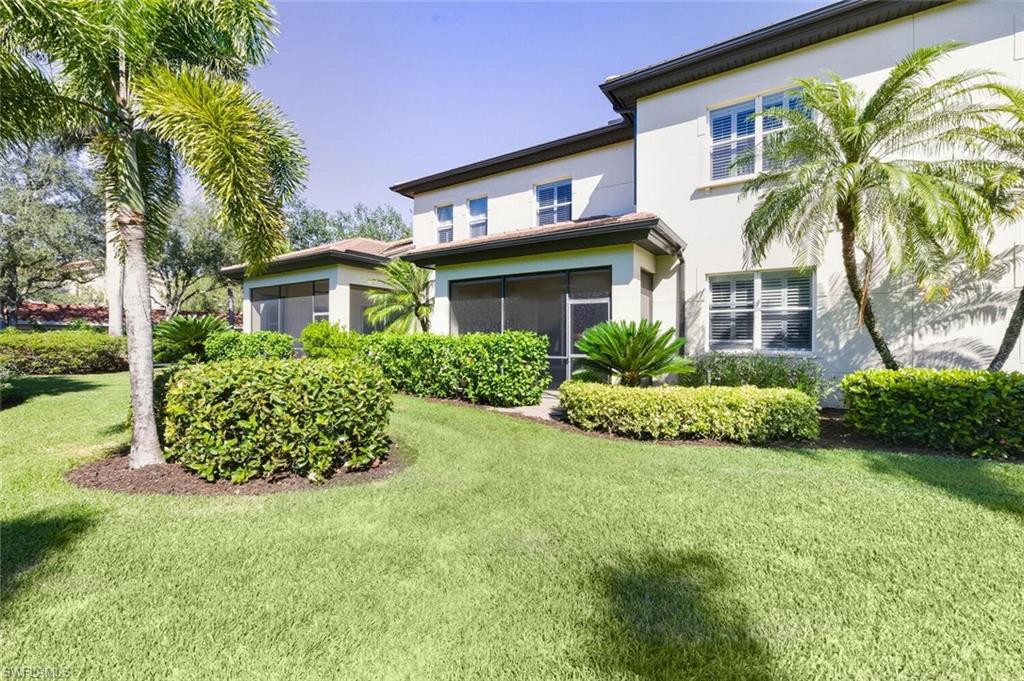Welcome to Montelena at The Vineyards — luxury living in the heart of Naples. This beautifully appointed, tastefully designed enclave features only 33 private residences. This HOME is pristine 3,000 sq. ft., two floor attached VILLA with four bedrooms -including TWO PRIMARY EN-SUITES - one upstairs and one on the ground floor, both with spacious walk-in closets- a spacious LOFT, 3.5 baths, and an attached two-car garage. The home has HIGH IMPACT WINDOWS and Manual Shutters for the Lanai Sliders. The interior showcases GRANITE countertops, stainless steel NEWER appliances, rich WOOD cabinetry, TILE flooring, carpet in the bedrooms, PLANTATION shutters, decorative niches, and an open second-floor loft. Serene garden views are enhanced by multiple fountains and water features throughout the meticulously manicured common areas. Community amenities include a resort-style pool and spa with cabana area. Ideally located in NORTH Naples, just steps from shopping, dining, and medical facilities. Owner offering Home Warranty to Buyer.