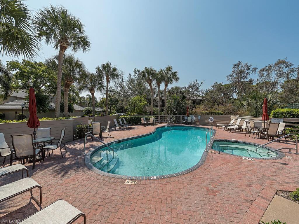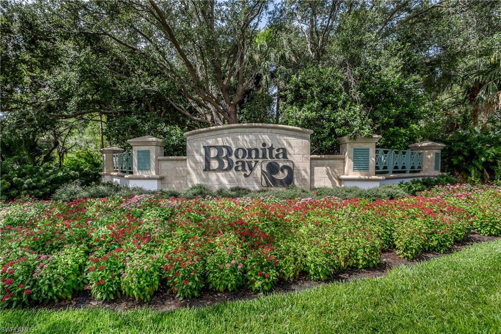 A truly unique opportunity is available within the neighborhood of Oakwood which is ideally located in the amenity rich resort community of Bonita Bay. This carriage home is exceptionally rare as it offers a floor plan of 3 bedrooms (two en-suite), 3 full baths, a dedicated 12 X 13 den/office. Perfect for guests or large enough for a year-round living. With slightly over 2,000 sq. ft. this unit has a high-end kitchen remodel which was enhanced in 2023 with new quartz countertops, backsplash, hardware and plumbing fixtures. Additional renovations include but not limited to updated bathrooms, newer tile & wood flooring, lighting, new (2022) carpeting in bedrooms, interior painting and entry railing. The great room with volume ceilings opens to the private lanai looking out over lush treetops. New roof in 2022 and exterior painted in 2024! It is perfection and ready to move in. One car attached garage and ample additional parking for owner/guest. Oakwood offers a community tennis court, pool/clubhouse just steps away. Bonita Bay has a private beach with shuttle service and an endless list of lifestyle features, sports facilities, parks, and trails mixed within a stunning natural setting. Join Backwater Jacks full marina and restaurant or the prestigious Bonita Bay Club with five golf courses and an array of world class facilities including social, sports and leisure facilities.